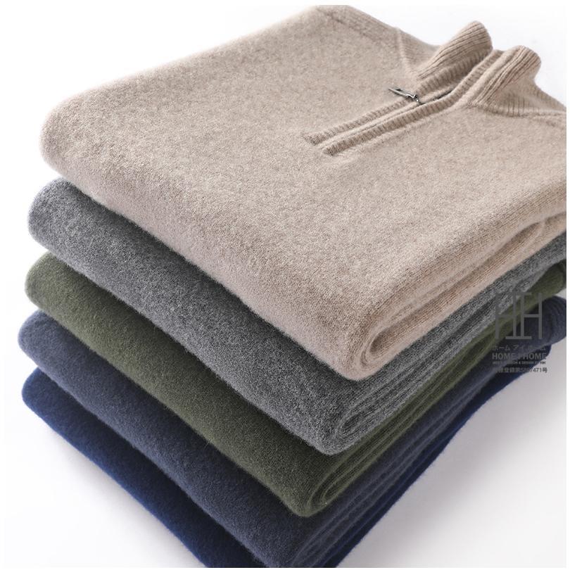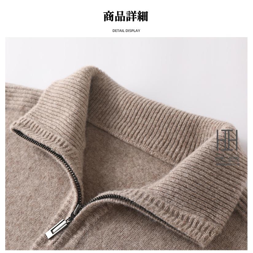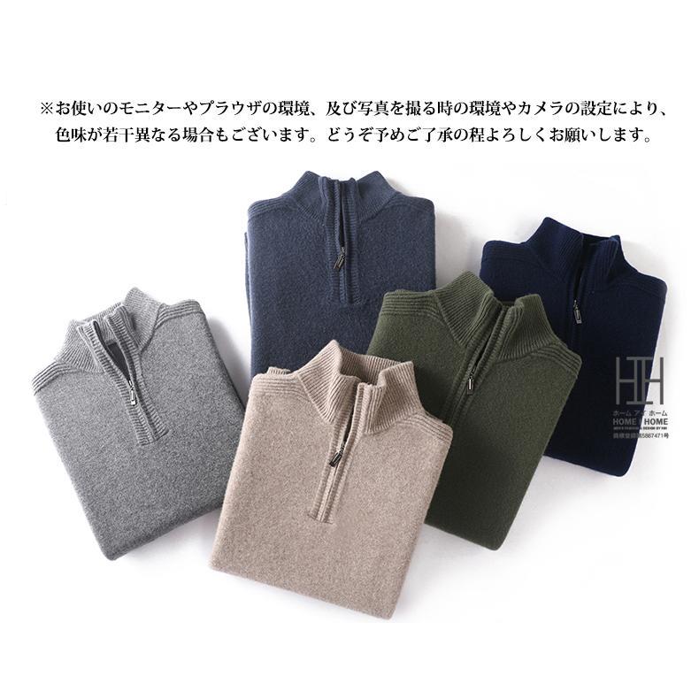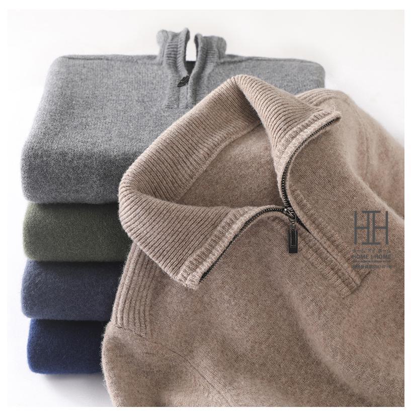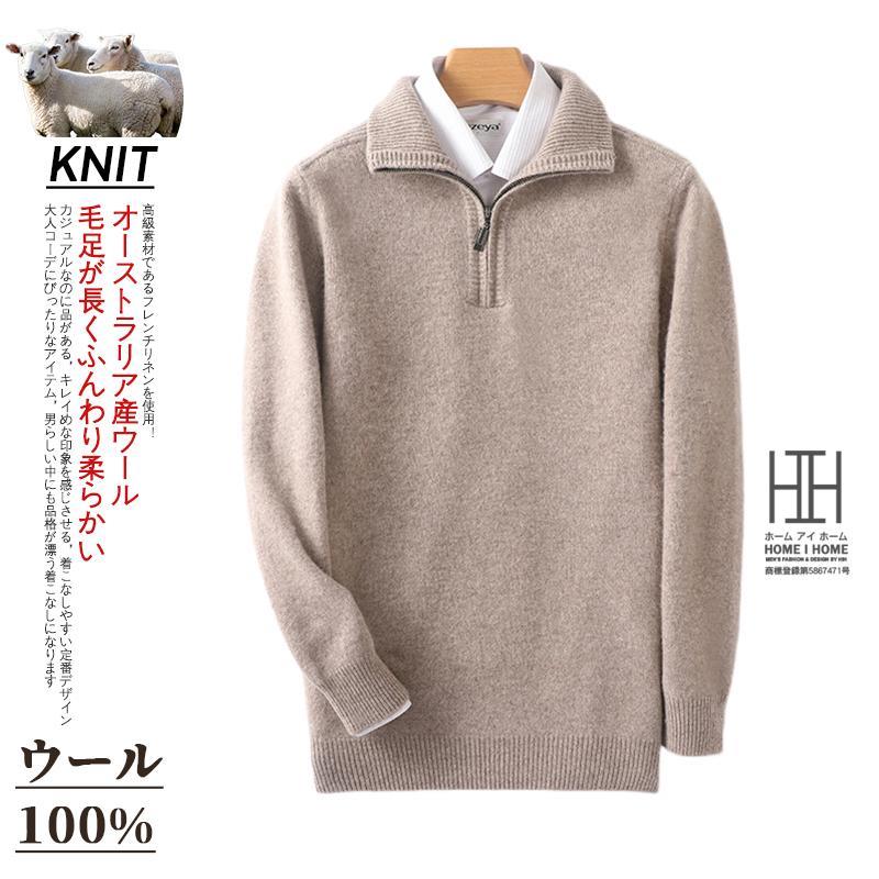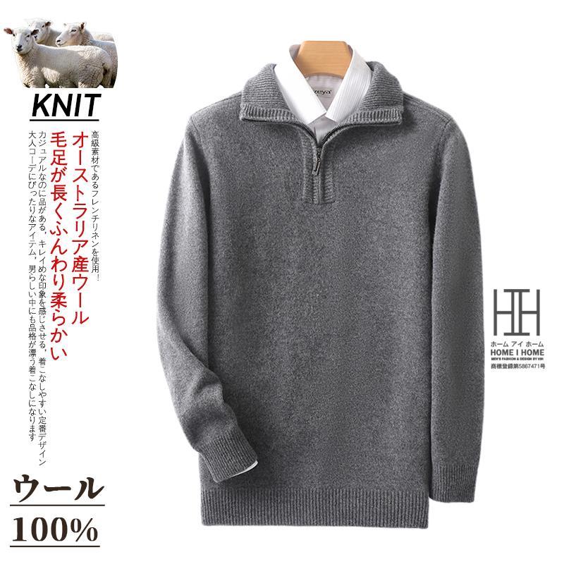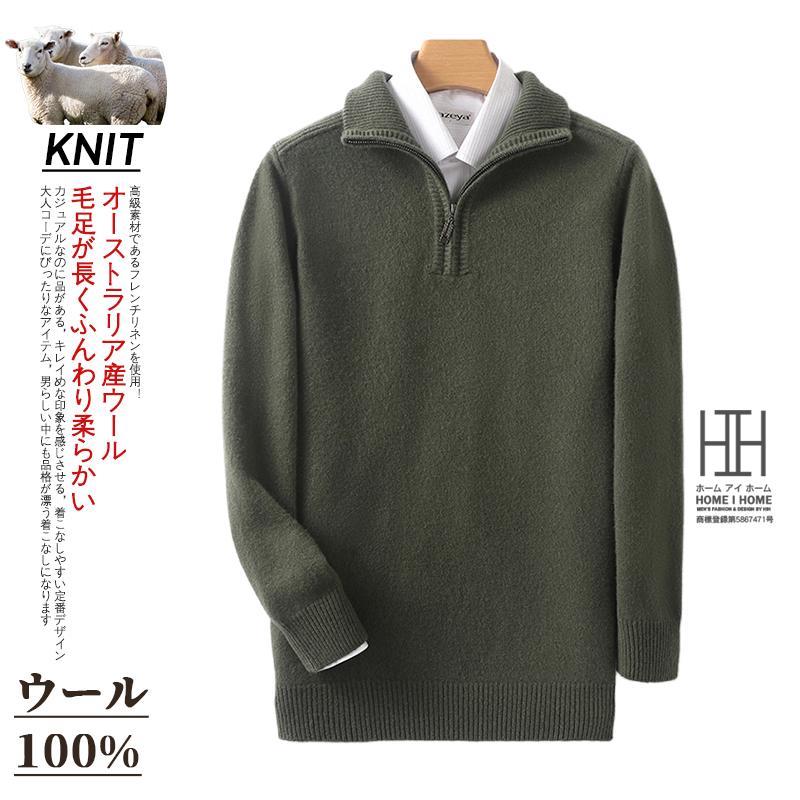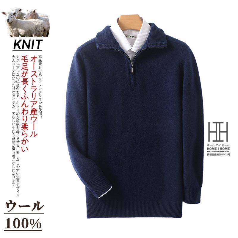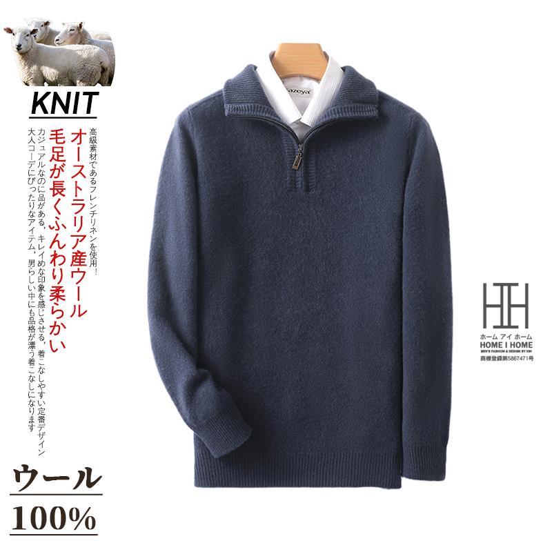ウールセーター メンズ 長袖 ハーフジップセーター ハイネック おしゃれ 無地 ウール100 シンプル ニットセーター 秋服 通勤 カジュアル ビジカジ 冬服