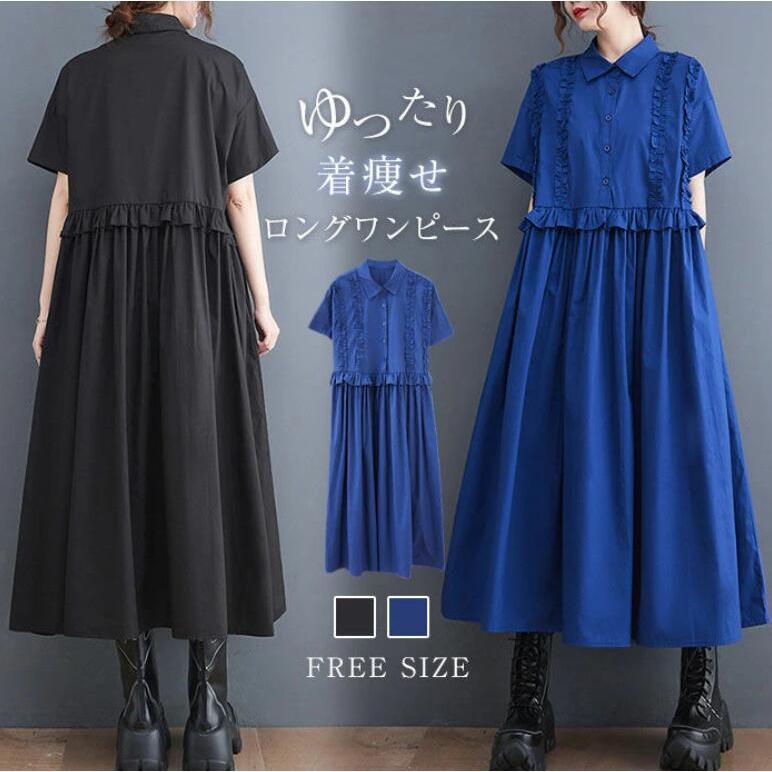 ワンピース シャツワンピース レディー ワンピース 超目玉商品 ブラック ブルー