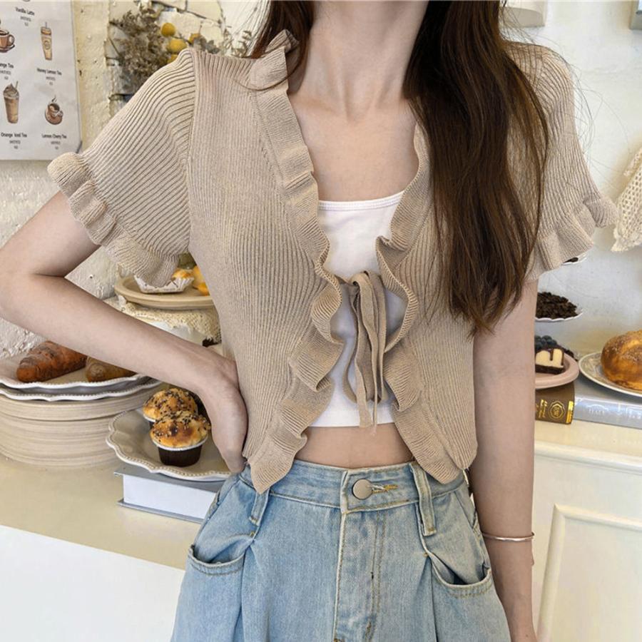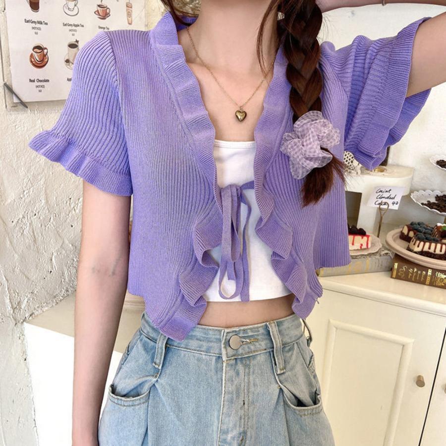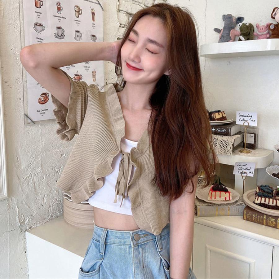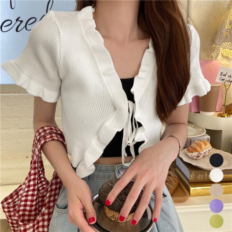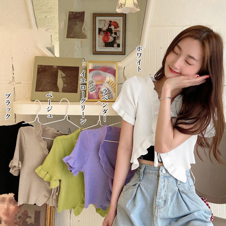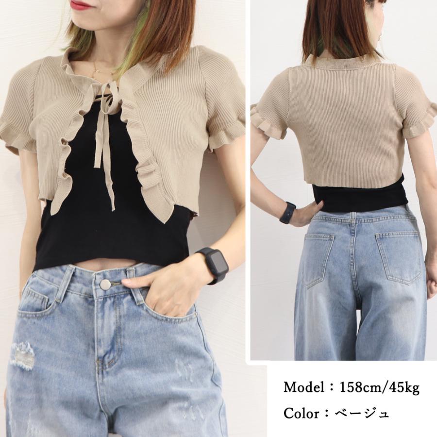 フリルカーディガン クロップドボレロ トップス カーディガン ボレロ 続々入荷中 ベージュ ブラック イエローグリーン ラベンダー ホワイト