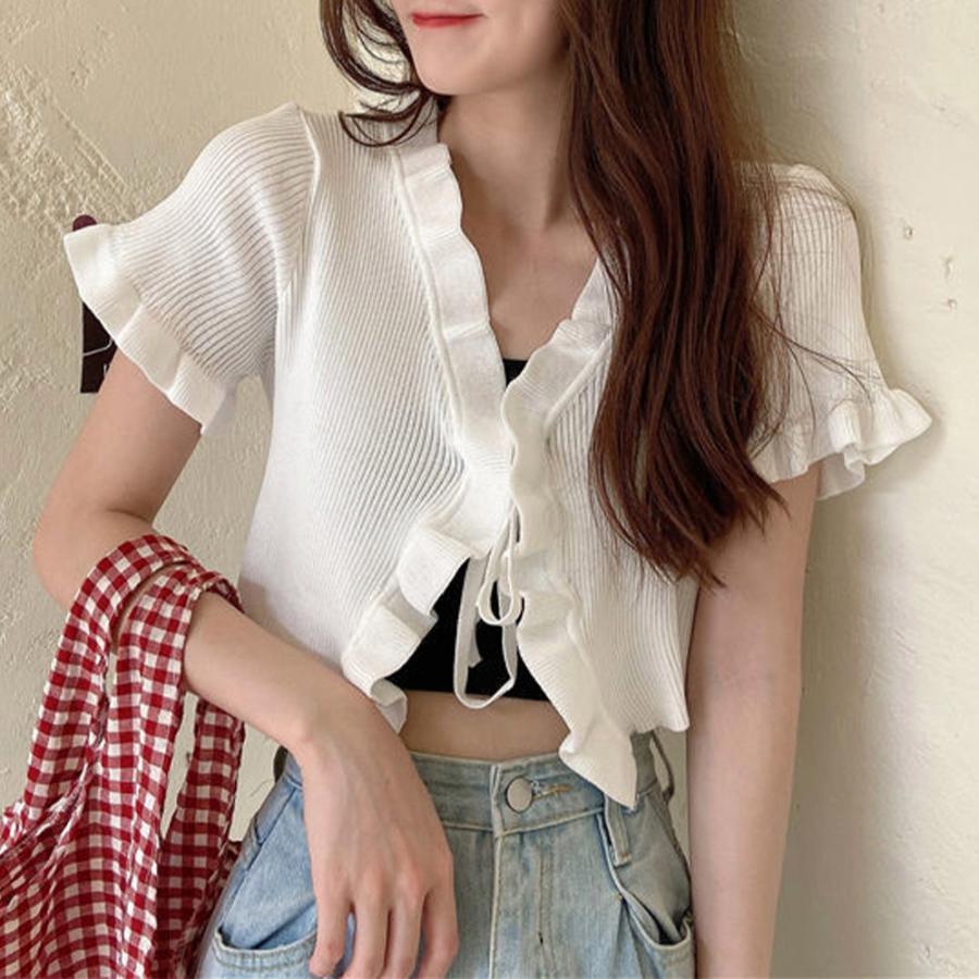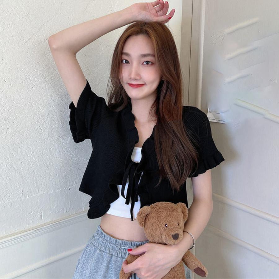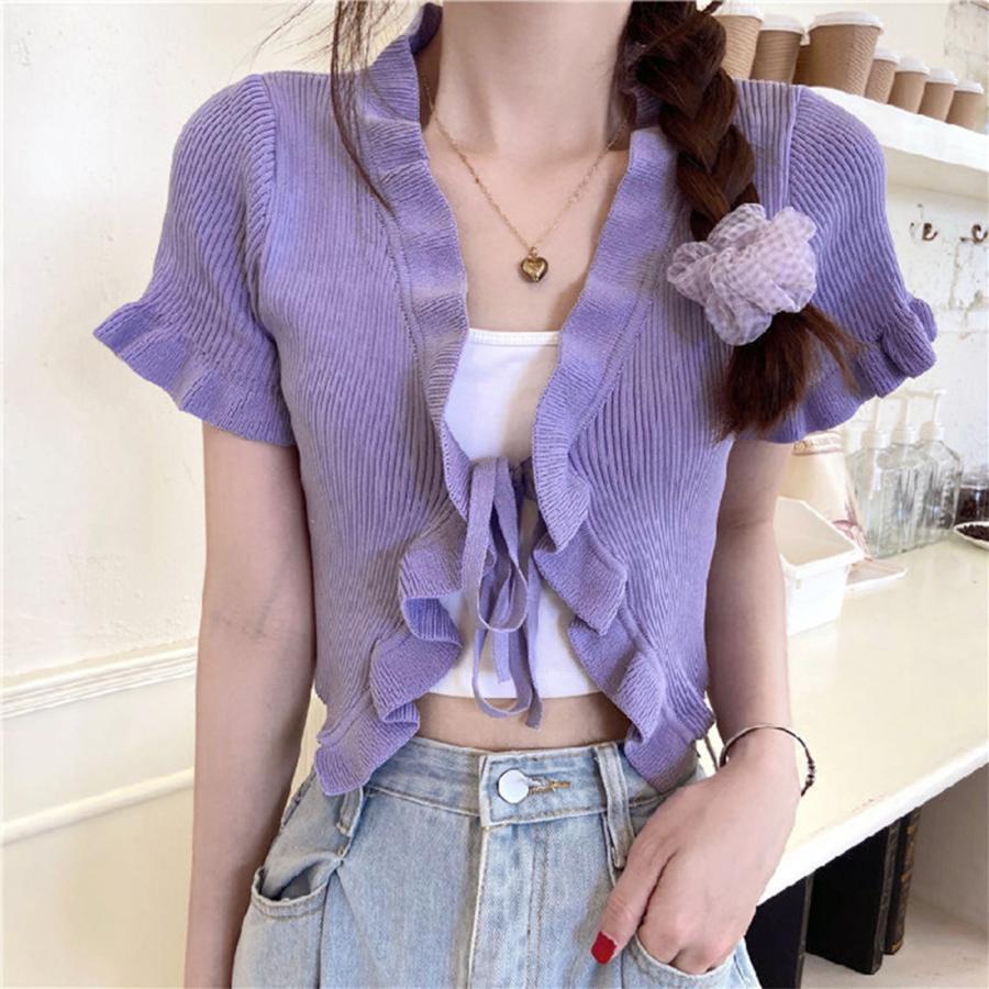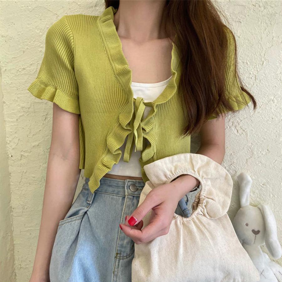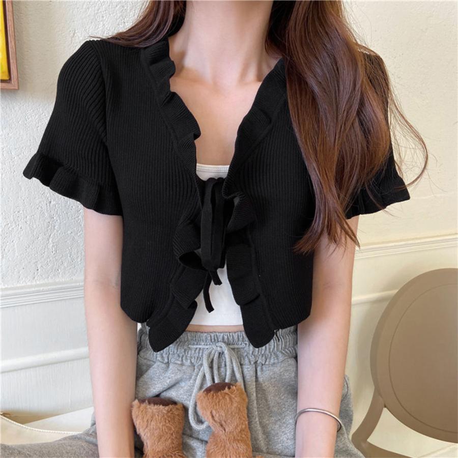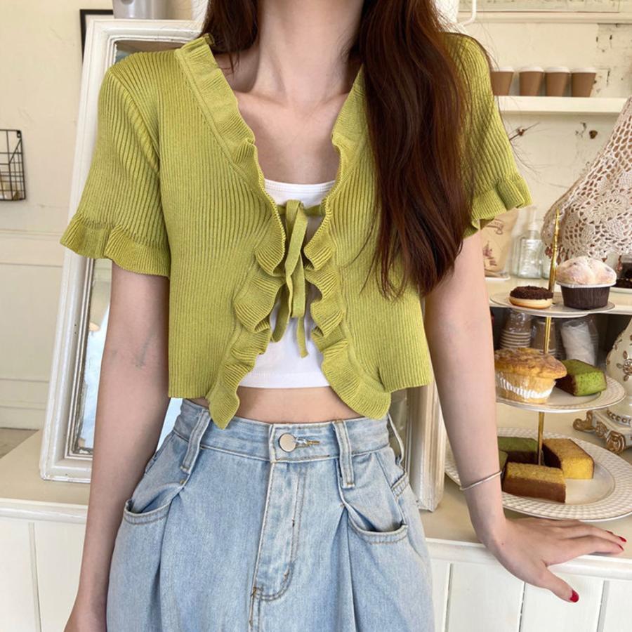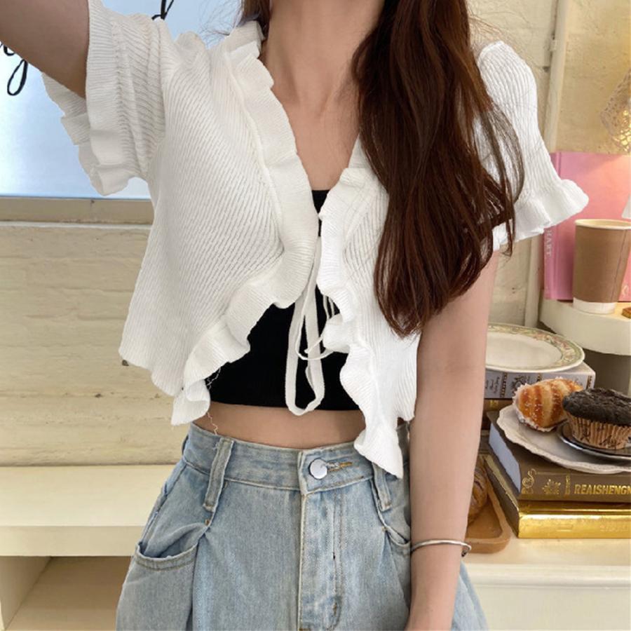 フリルカーディガン クロップドボレロ トップス カーディガン ボレロ 続々入荷中 ベージュ ブラック イエローグリーン ラベンダー ホワイト