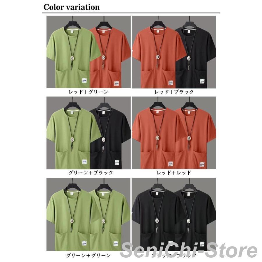 tシャツ カットソー ポケットtシャツ メンズファッション 人気 レッド+グリーン レッド+ブラック グリーン+ブラック レッド+レッド グリーン+グリーン ブラック+ブラック M L XL 2XL 3XL 4XL 5XL