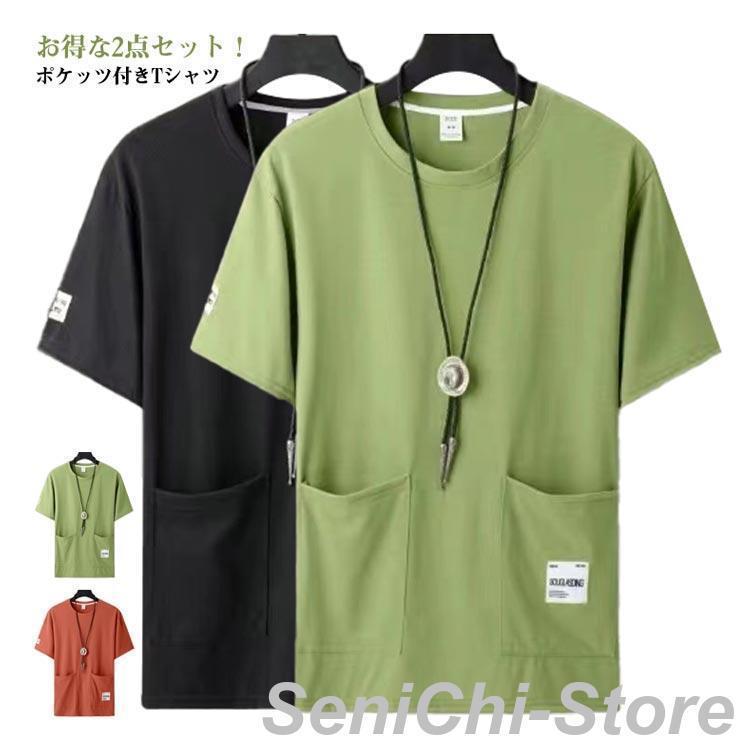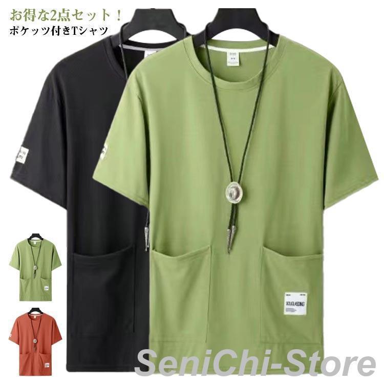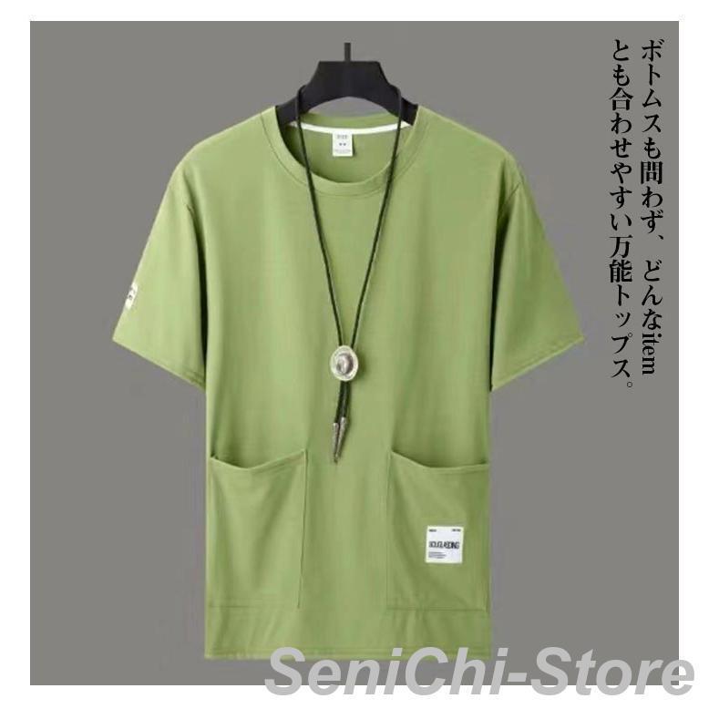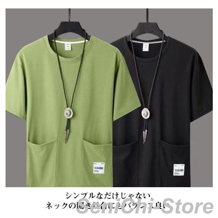 tシャツ カットソー ポケットtシャツ 無地Tシャツ メンズ オーバーサイズ 夏服 クルーネック 大きいサイズ 夏 半袖Tシャツ ゆっ ビッグtシャツ