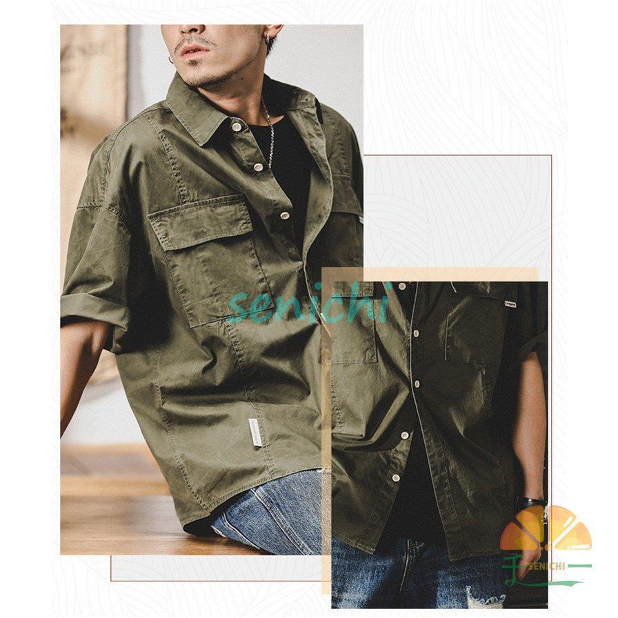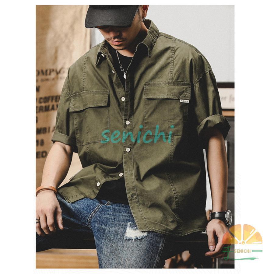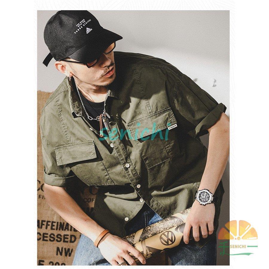 半袖 ワークシャツ メンズ 胸ポケットあり カジュアルシャツ 半袖トップス アメカジ コットン 前開き