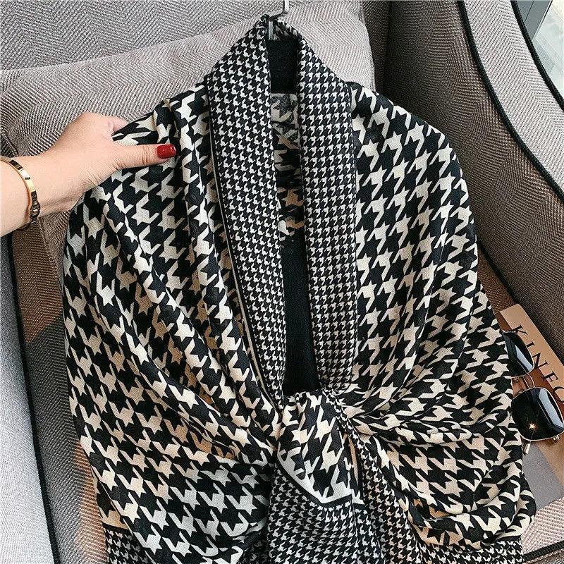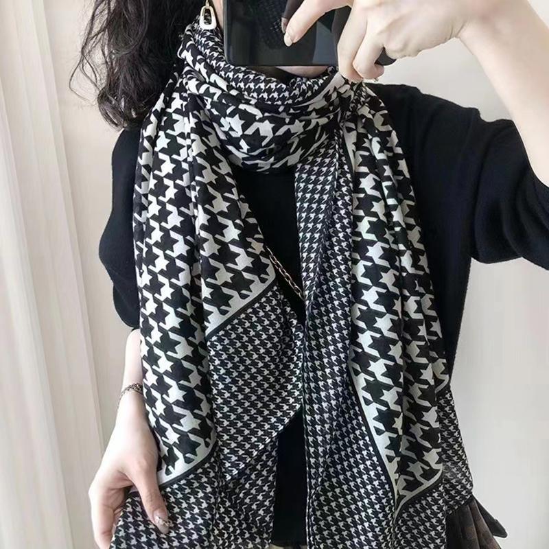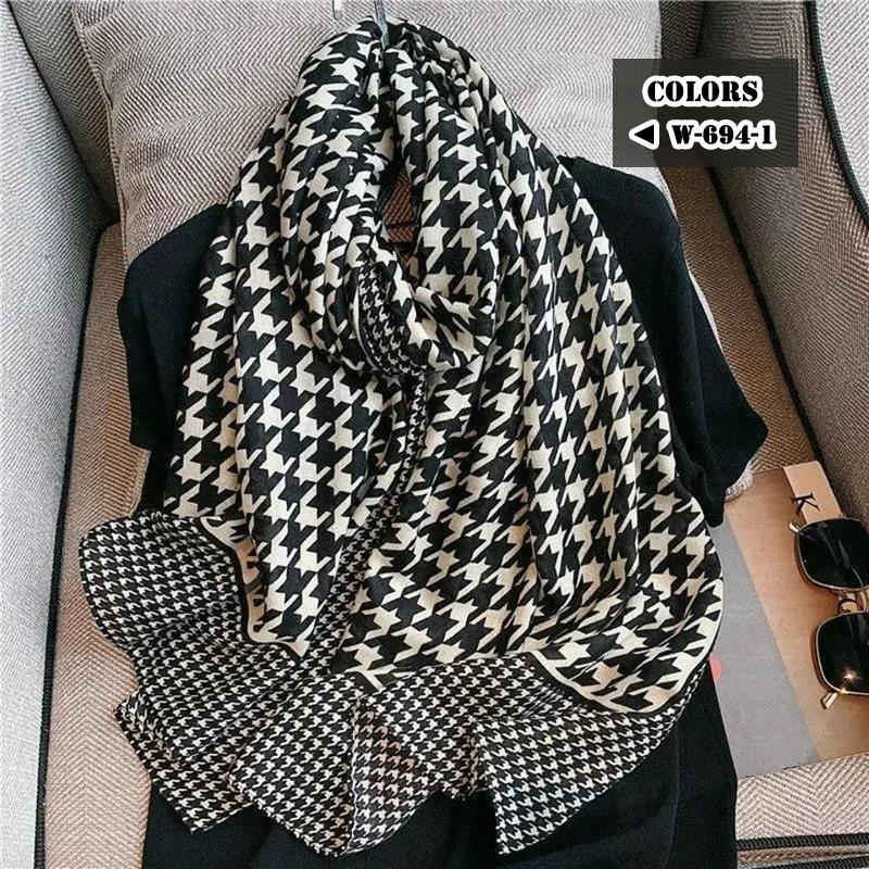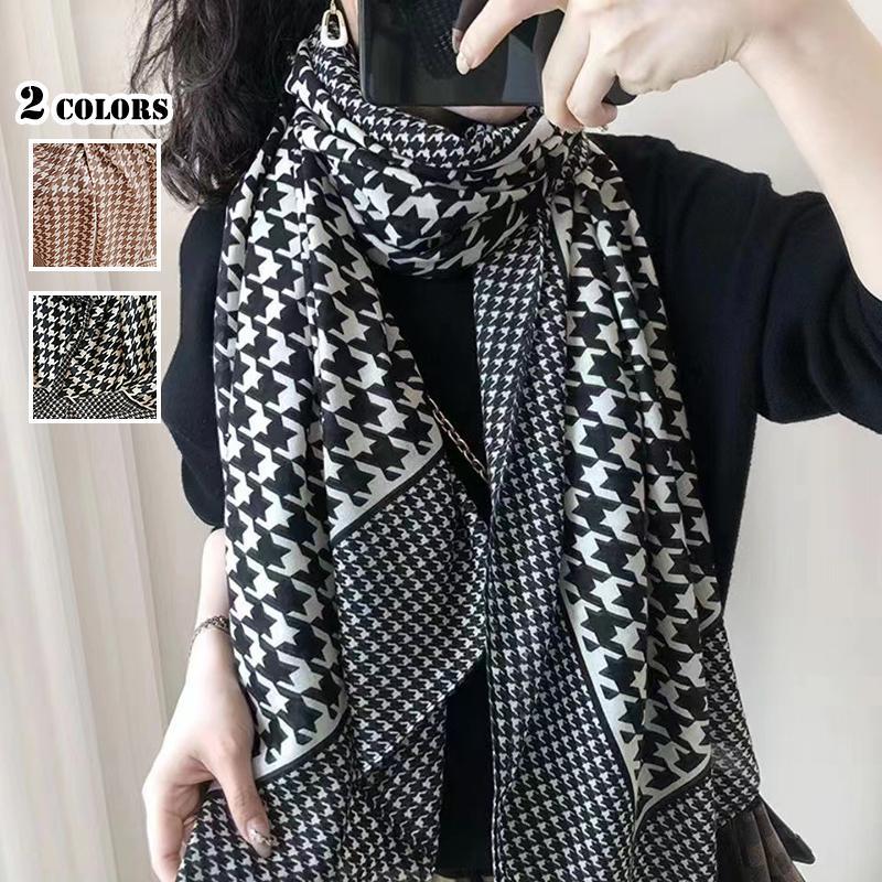ストール 大判 マフラー レディース バッグ 小物 ブランド雑貨 特集 W-694-1 ブラック&ホワイト W-694-2 ライトブラウン