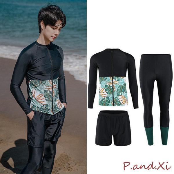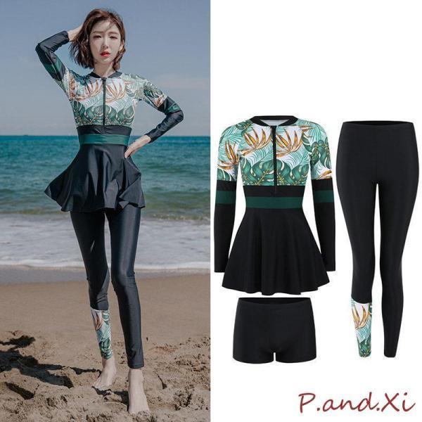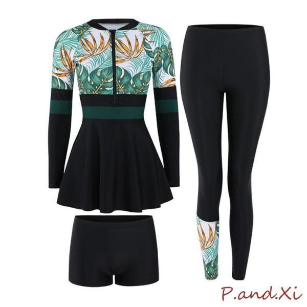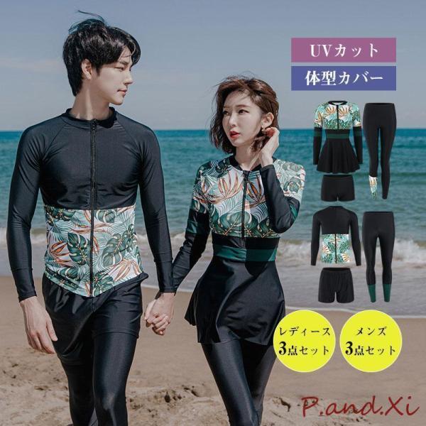 水着 レディース メンズ 体型カバー 3点セット 紫外線対策 UVカット カップル フィットネス 競泳水着 水陸両用 おしゃれ 韓国風