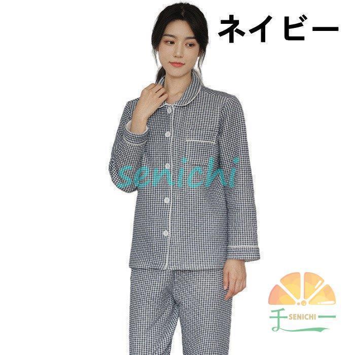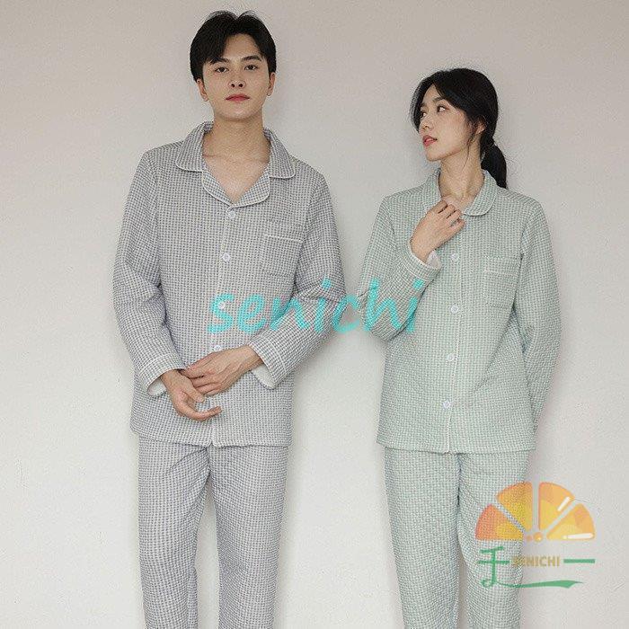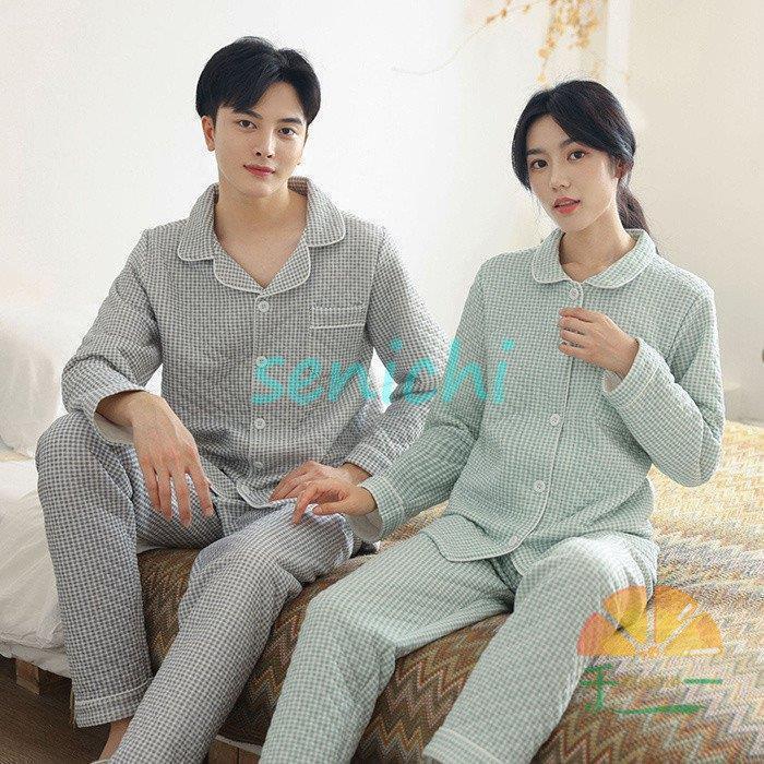 ペア パジャマ プレゼント ガーゼ 春 インナー 下着 ナイトウエア 大人気! ピンク(女) グリーン(女) ネイビー(女) グレー(男) ネイビー(男) M L XL