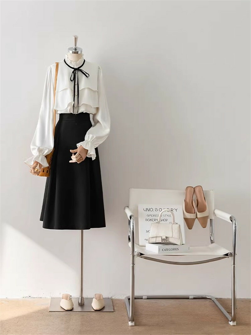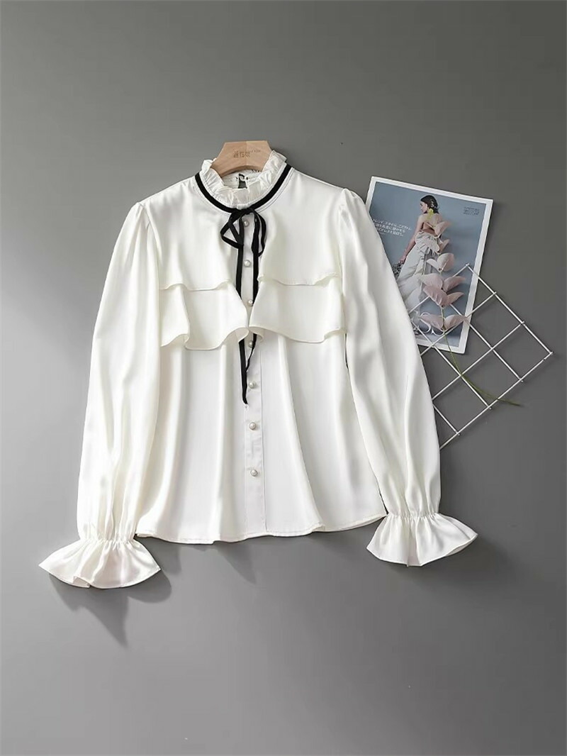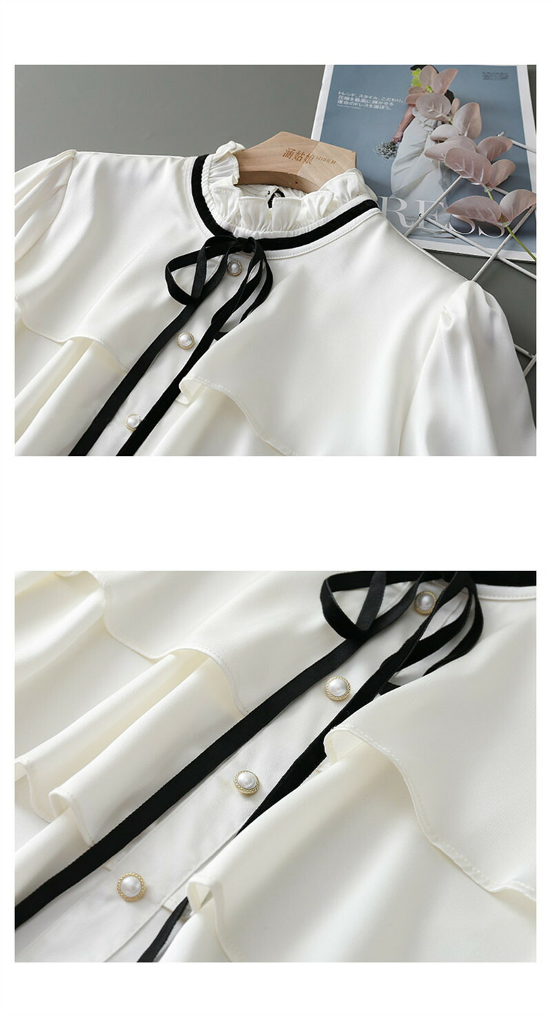 シアースリーブ ドッキングシャツ ボウタイシャツブラウス