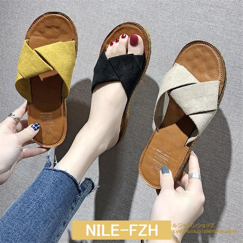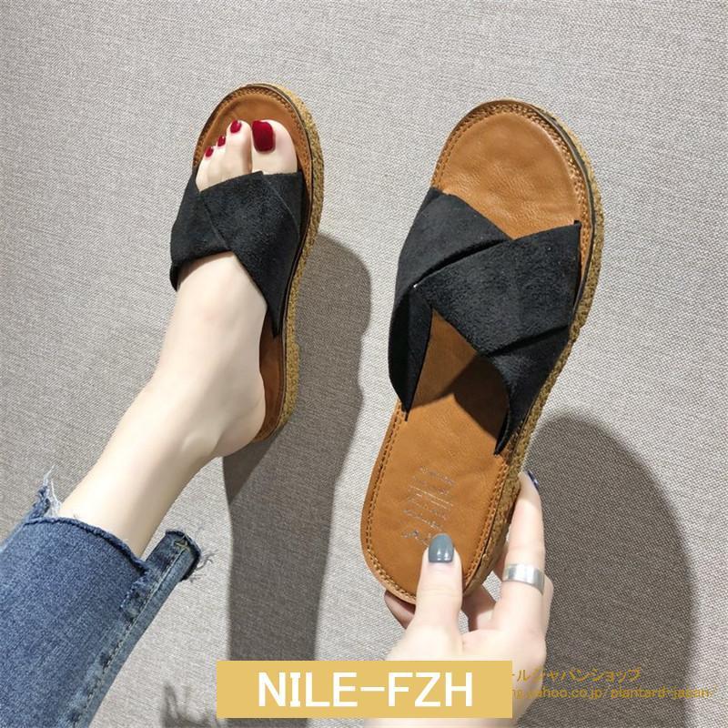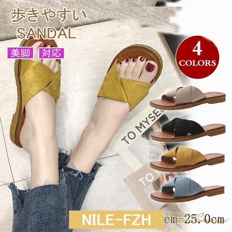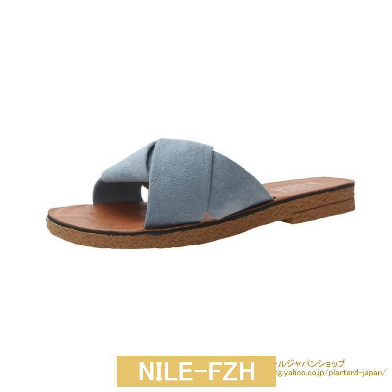 サンダル ぺたんこ レディース フラッ 靴 豊富な品揃え モカ ブルー イー ブラック 22.5 23 23.5 24 24.5 25