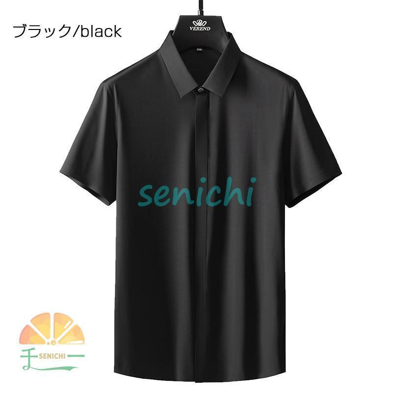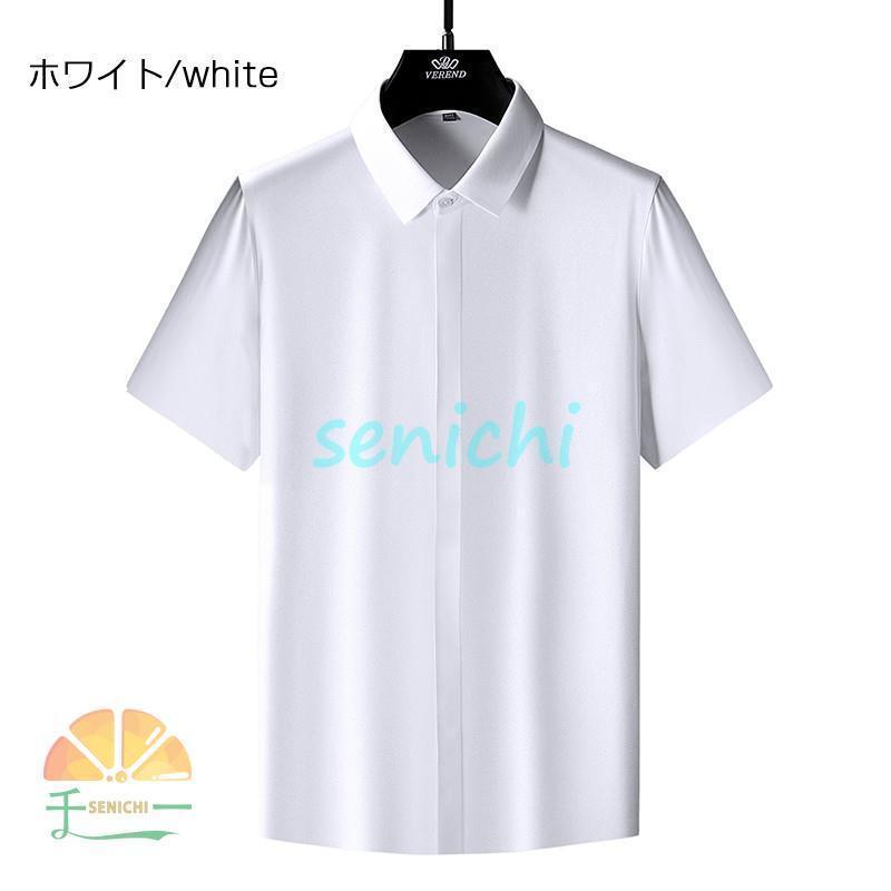 ドレスシャツ メンズ 半袖 隠しボタン ワイシャツ ストレッチ 白シャツ 滑らかい 柔らかい ノーアイロン 上質 ビジネス 夏新作 形態安定