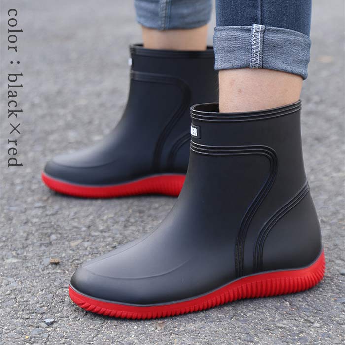 片手でサッと履けるショートブーツなら雨の日の出かける前の準備もあっという間 サイズ: 36(23cm) 37(23.5cm) 38(24cm) 39(24.5cm) 40(25cm) カラー: ブラック レッド グリーン
