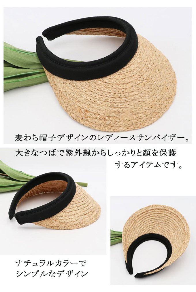 麦わら帽子 サンバイザー 男女兼用 つば広帽子 遮光