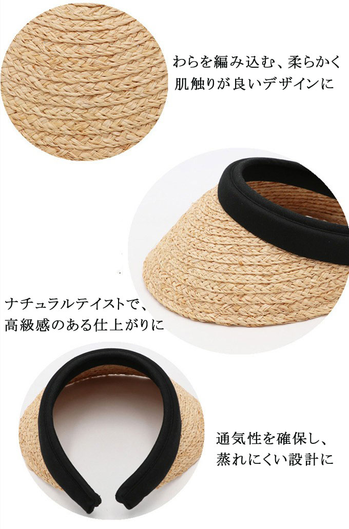 麦わら帽子 レディース メンズ 男女兼用 サンバイザー つば広帽子 カット ハット 日焼け防止 紫外線対策 日除け 完全遮光 夏物