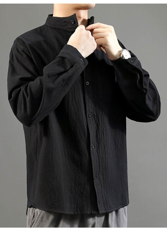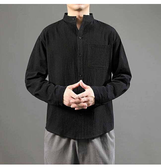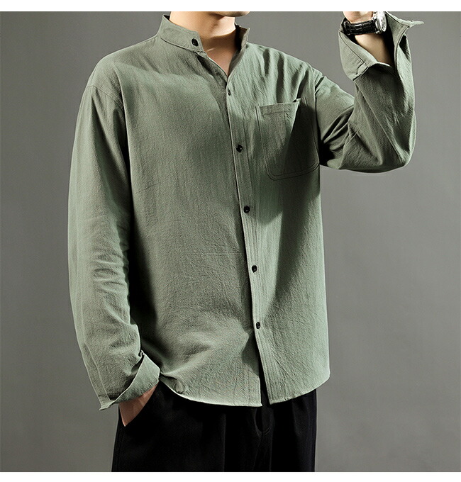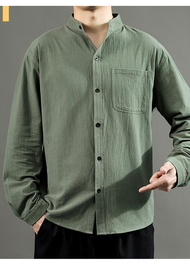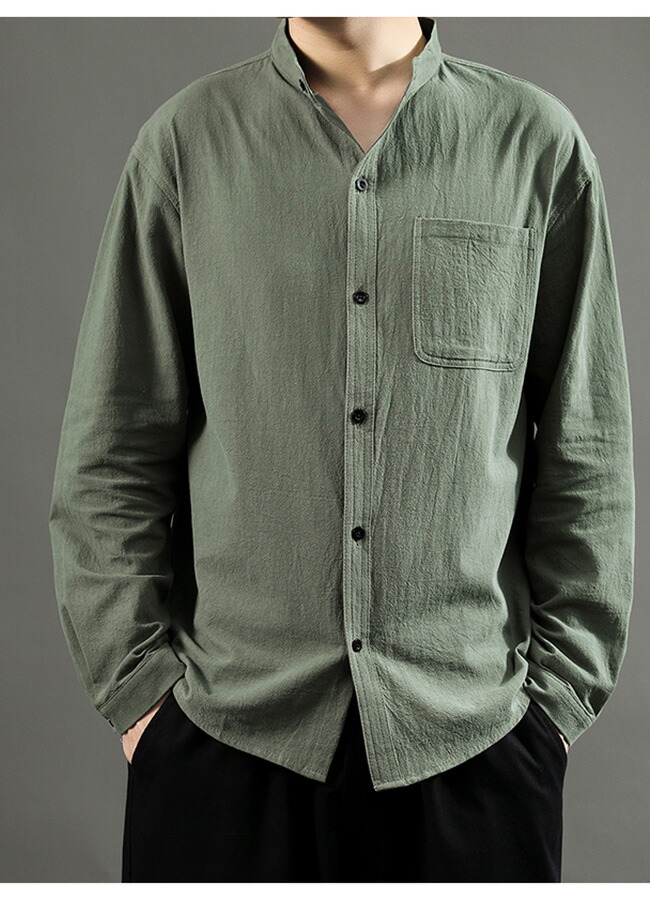 快適な素材感&レトロなデザイン メンズ長袖リネンシャツ