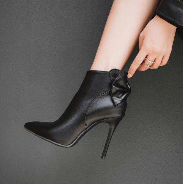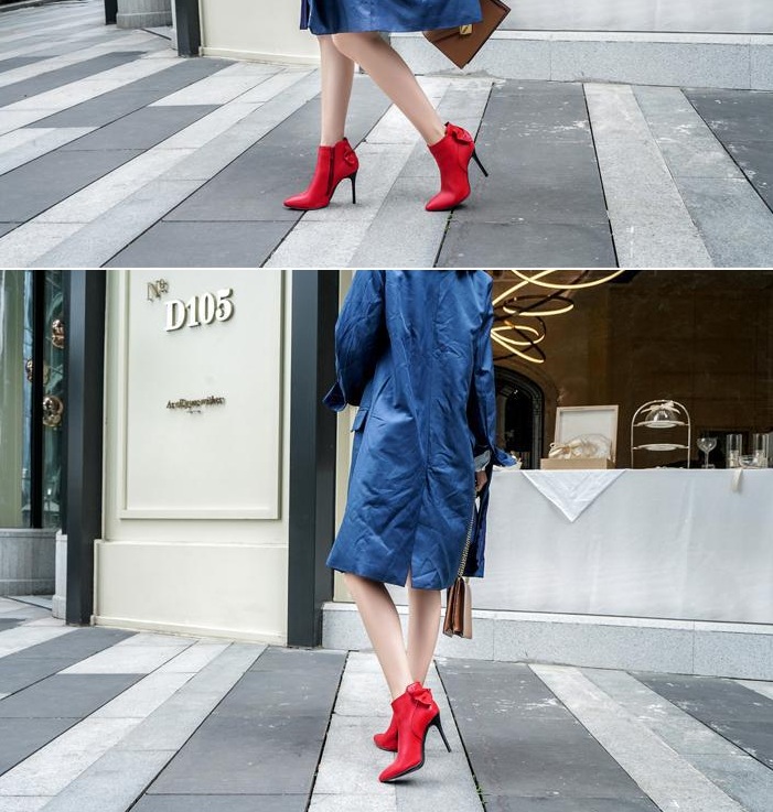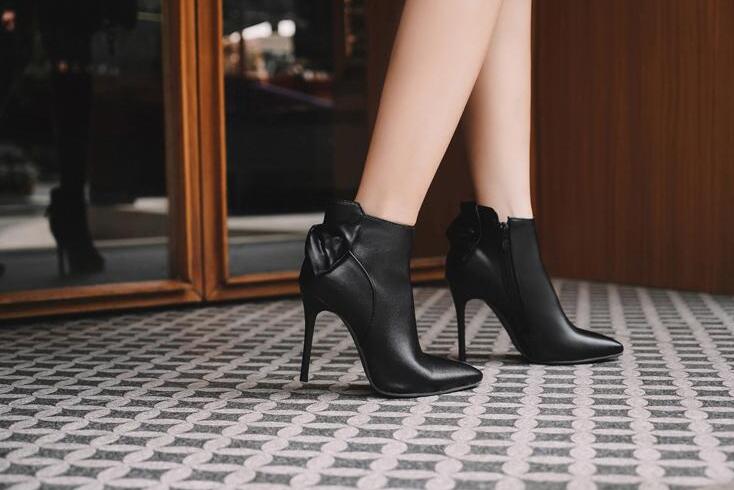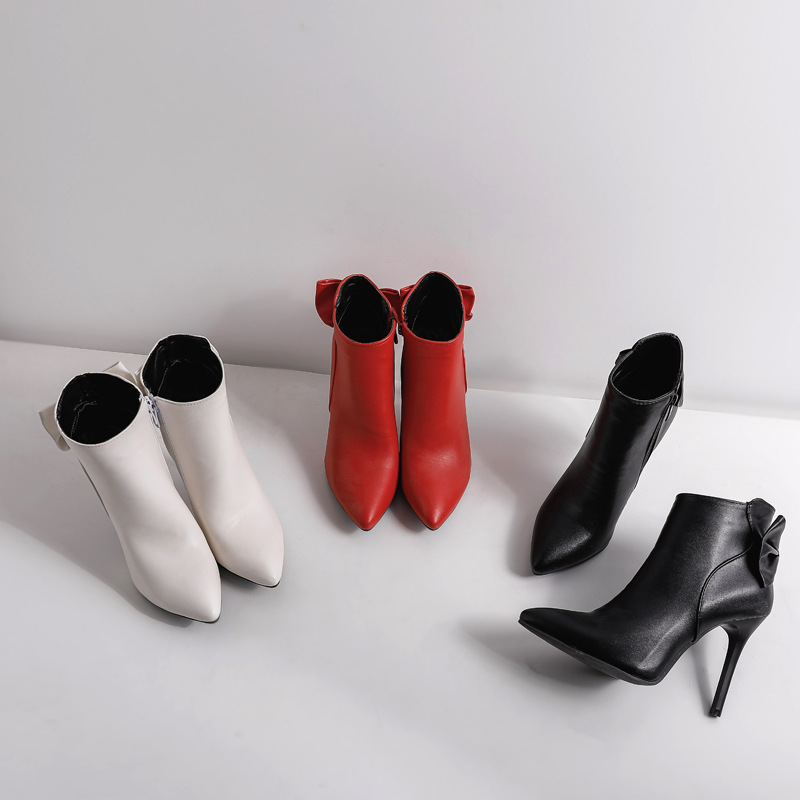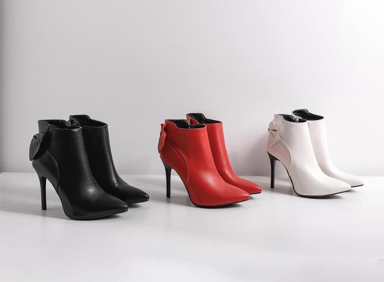 美脚効果 バックファスナー付 ショートブーツ ピンヒール サイドジッパー ポインテッドトゥブーティー春秋 サイズ: 22cm 22.5cm 23cm 23.5cm 24cm 24.5cm 25cm 25.5cm 26cm 26.5cm カラー: ホワイト ブラック レッド