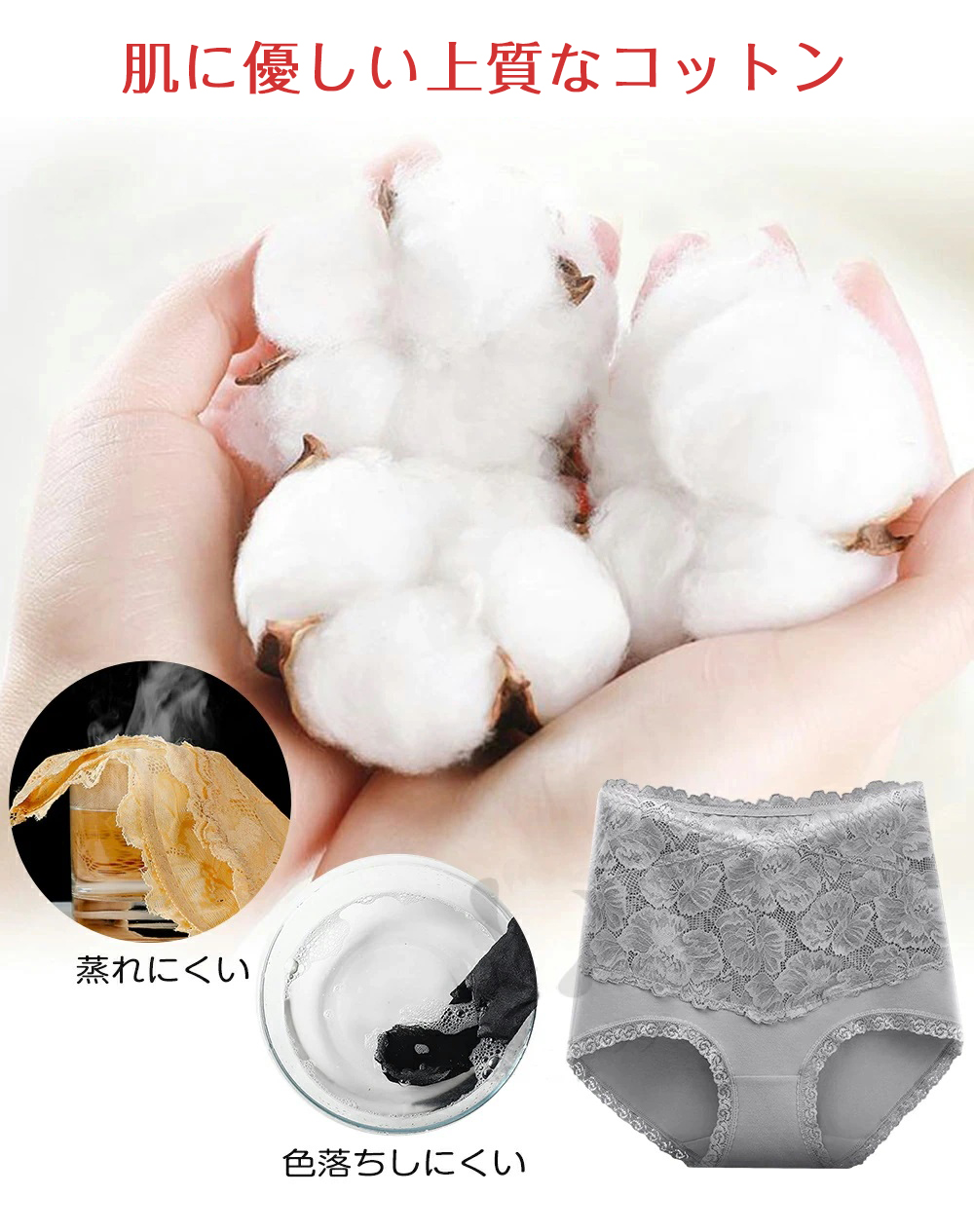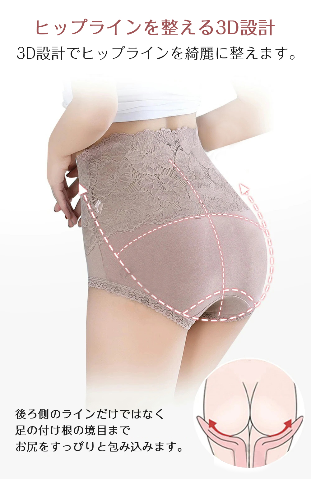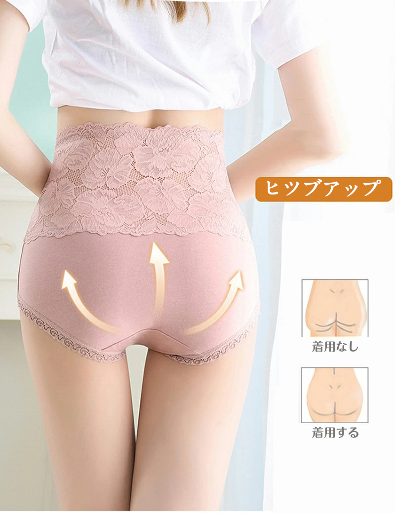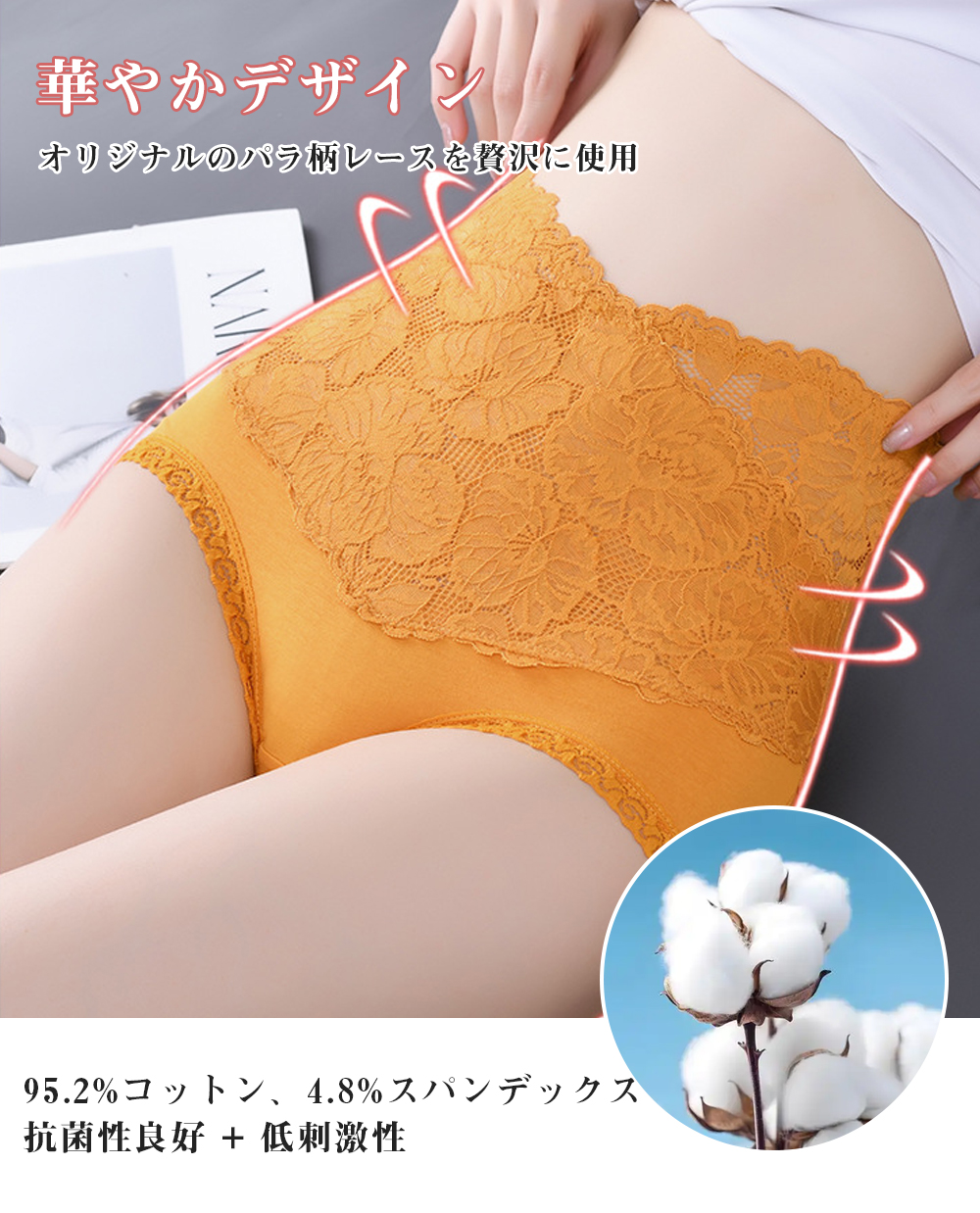 レディースショーツ ハイウエストショーツ スタイルアップ 補正下着 ヒップアップ 綿 温活 おなかすっぽり 深履き しっかりした生地 大きい レディース 花柄レース コットン 綿 肌着 下着 ストレッチ スタンダード ショーツ