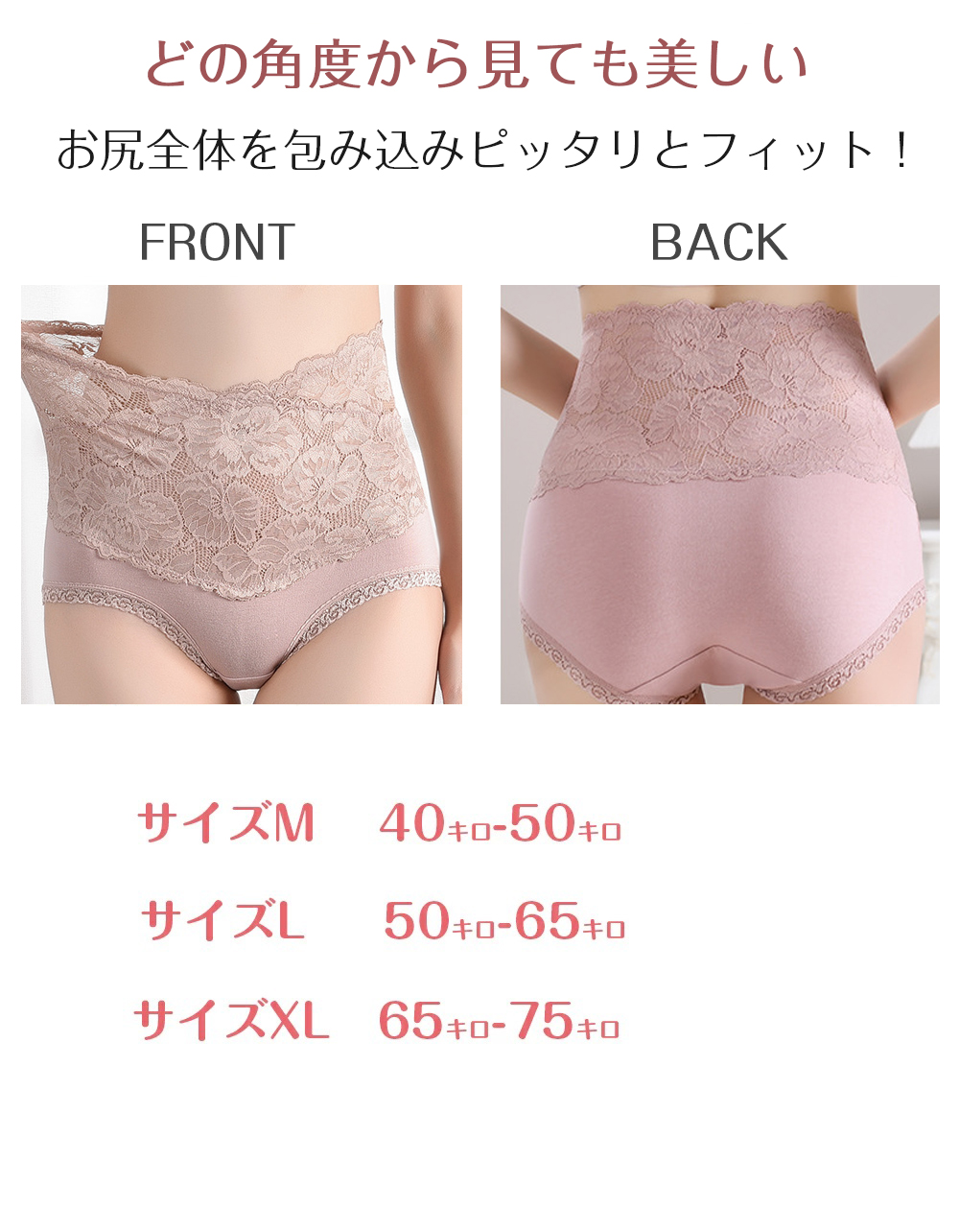 しっかり深穿き 包み込み ショーツ ハイウエストショーツ 花柄レース コットン 綿 肌着 下着 ストレッチ スタンダード ショーツ