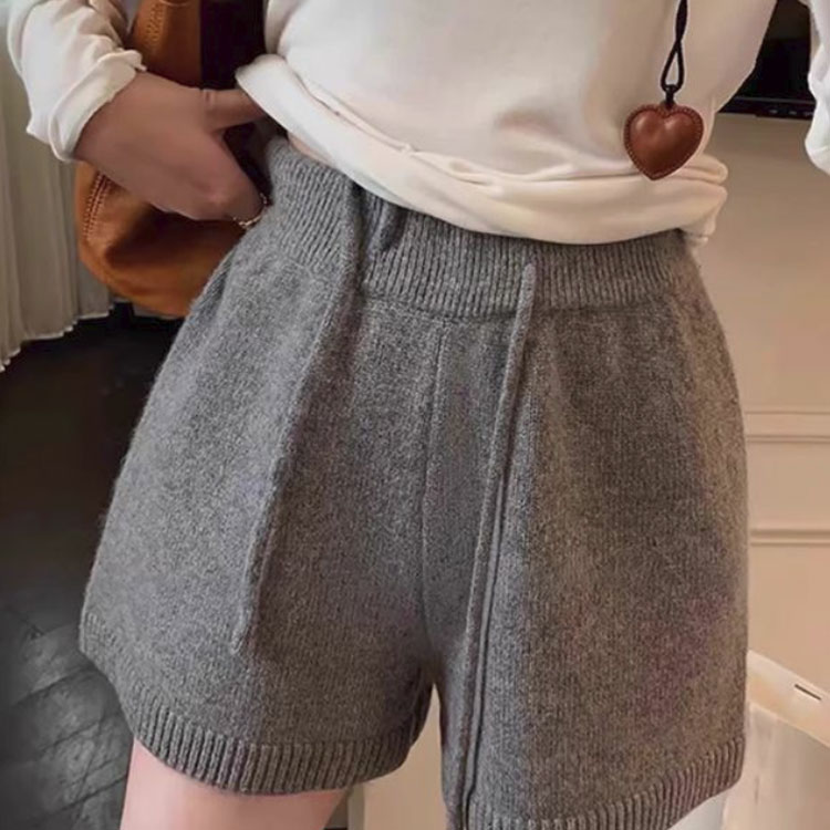 ニット ショートパンツ レディース ニ ボトムス パンツ 44%Off ライトグレー ダークグレー S M L XL