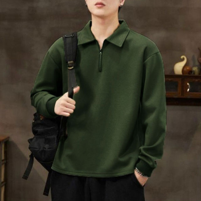 メンズ ハーフジップ 襟付き トレーナ トップス スウェット トレーナー 新作 グリーン ブラック M L XL 2XL 3XL 4XL 5XL