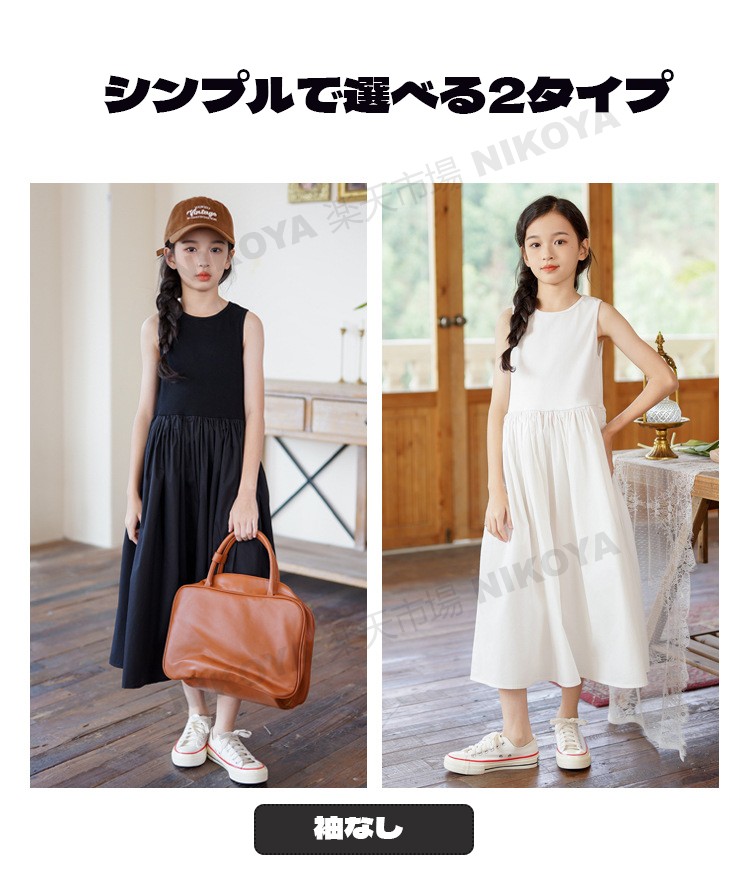 ワンピース キッズ 半袖 ノースリーブ 無地 子供ワンピース カジュアル 夏 袖なし ジュニア 女の子 カワンピース 子供 ドレス 発表会 入園式 ガールズ 子供服 シンプル 綿