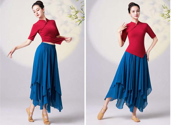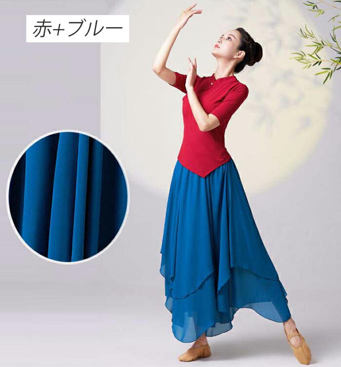 ダンス衣装 上下2点セット レディース 体操 ダンス 社交ダンス ウェア 通販 赤+ブルー 黒+赤 M L XL XXL XXXL 4XL 5XL 6XL
