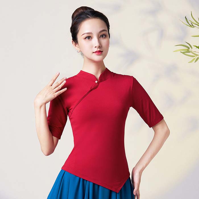 ダンスウェア レディース ストレッチメッシュ 東方ダンス フリル フィットネスウェア ダンス用ブラウス スウェット ヨガウェア ダンス練習着 ダンス授業 稽古 団体服 古典ダンス ヨガ バ レッスン着
