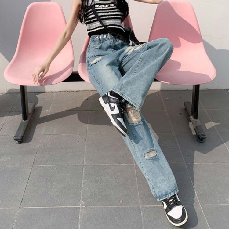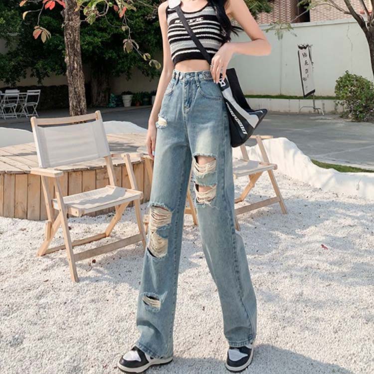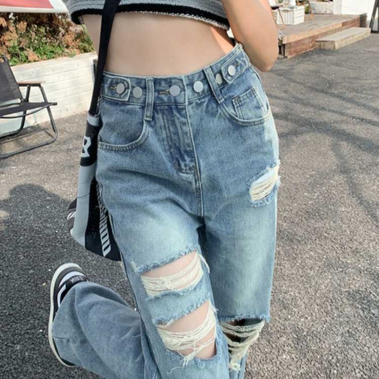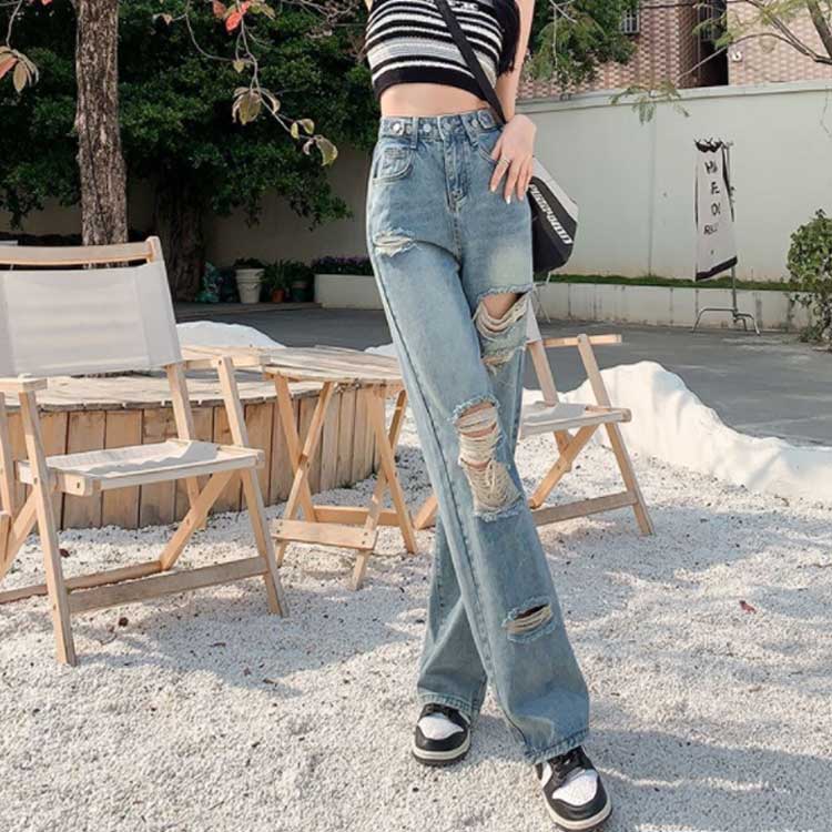 ダメージデニム ロングパンツ レディー レディースファッション 続々登場 S M L XL 2XL