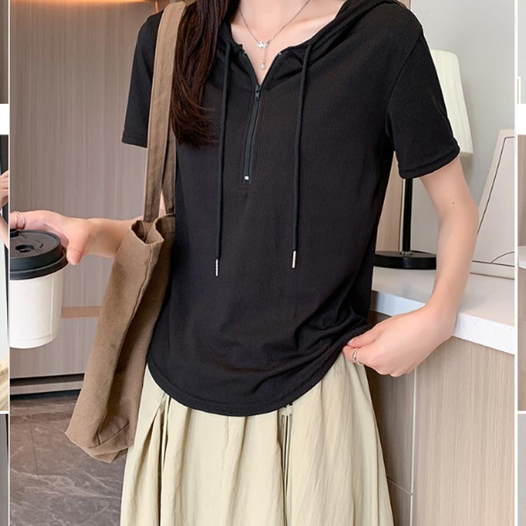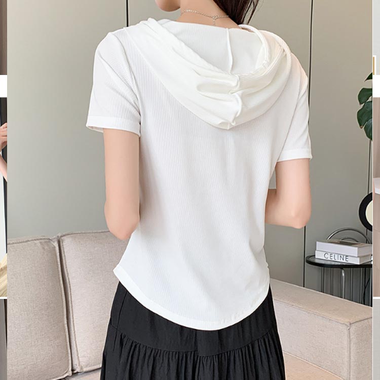 レディース 接触冷感 フード付きTシャ トップス パーカー お買い得 ブラック ホワイト M L XL 2XL