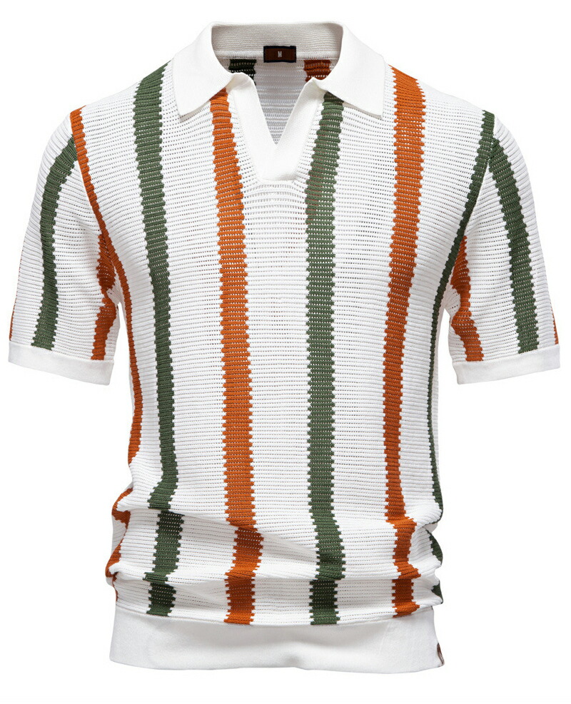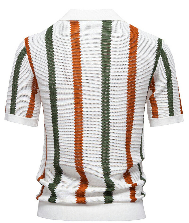 【2025春夏】ニットポロシャツ 半袖 メンズ 透かし編み ストライプ 襟付きVネック サマーニット おしゃれ 透ける レイヤード リラックス トップス 吸湿速乾 半袖tシャツ ゆったり カットソー 個性的 カラフル 夏服 プレゼント メンズファッション