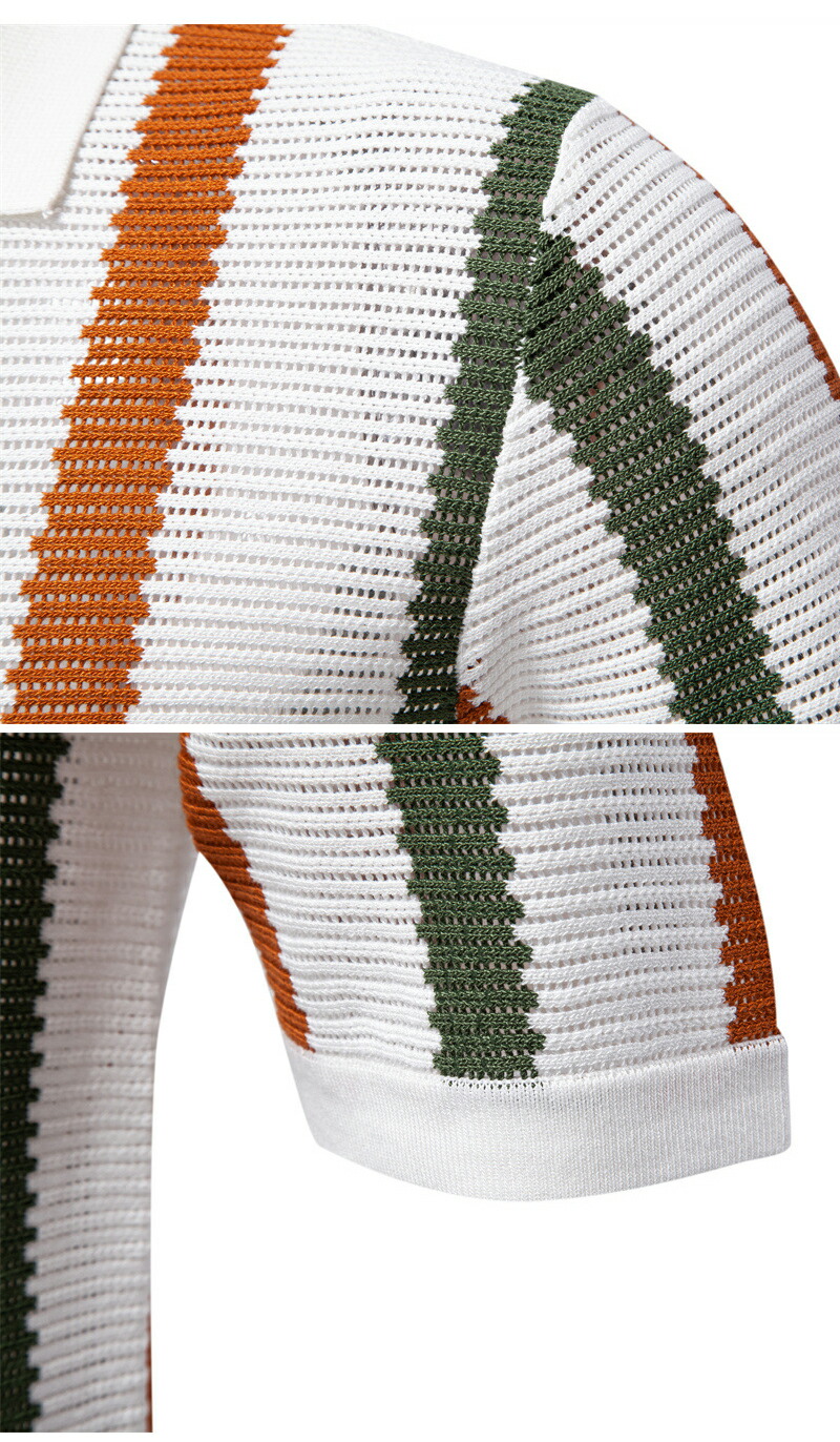 ニットポロシャツ 半袖 メンズ 透かし編み ストライプ 襟付きVネック サマーニット おしゃれ 透ける レイヤード リラックス トップス 吸湿速乾 半袖tシャツ ゆったり カットソー 個性的 カラフル