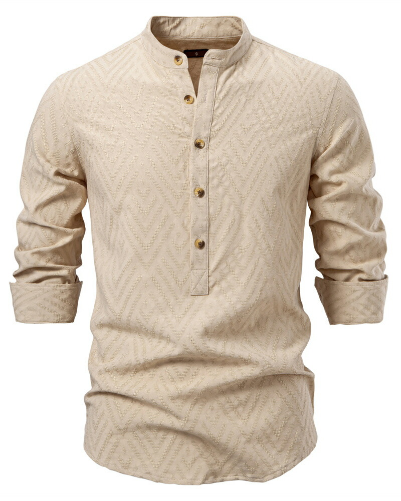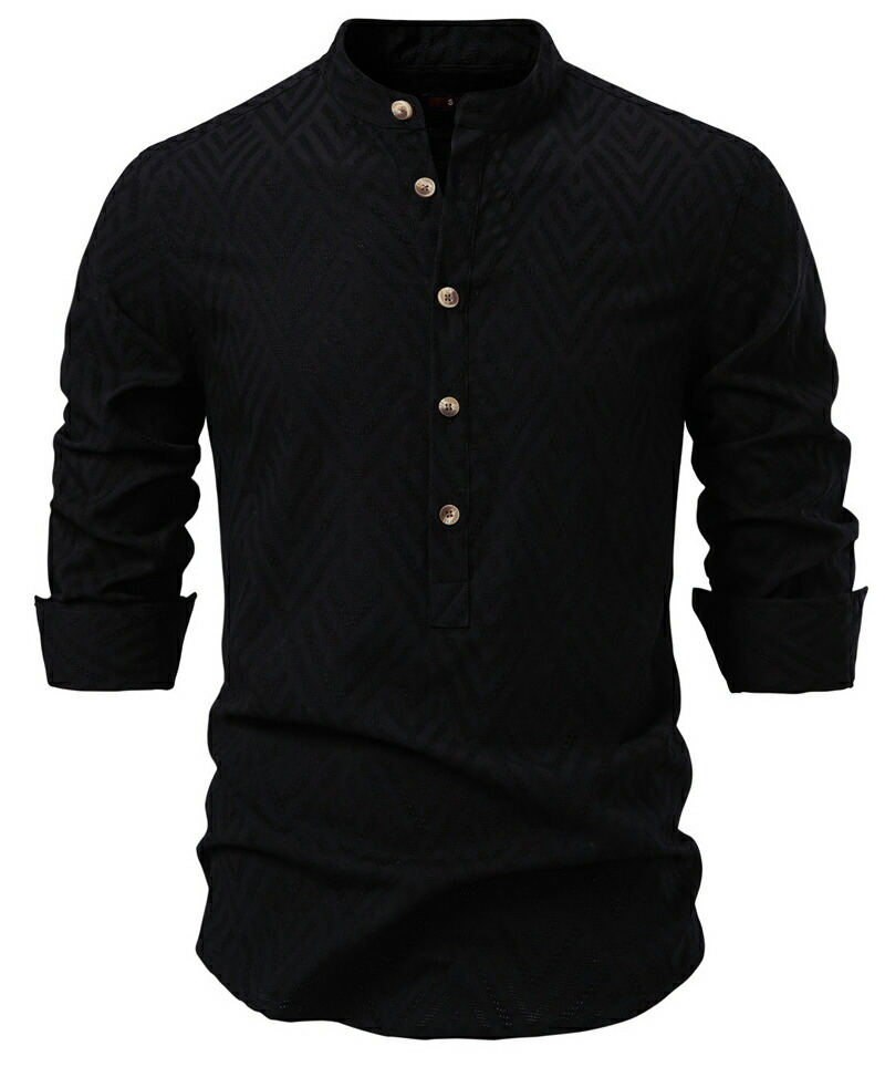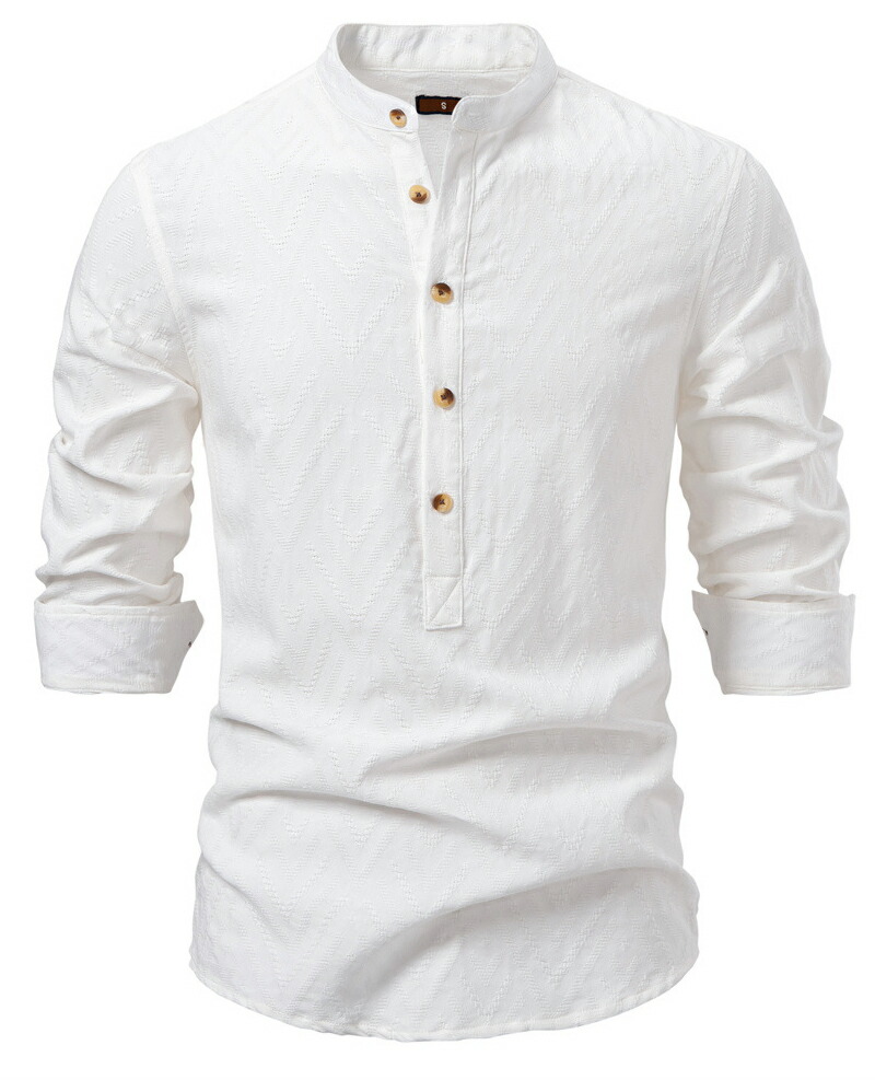 【送料無料】カジュアルシャツ コットン 長袖シャツ ヘンリーネック ゆったり 無地 shirt 春 夏 秋服 普段着 ホワイト ブラック アプリコット S M L XL 2XL