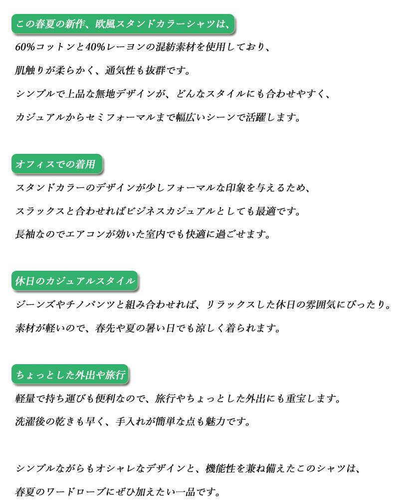 商品仕様 ◆商品名:スタンドカラー シャツ メンズ