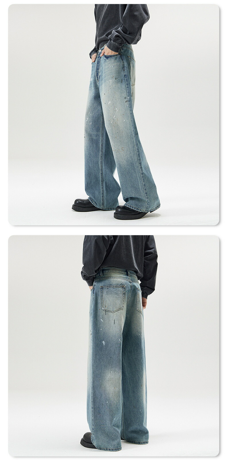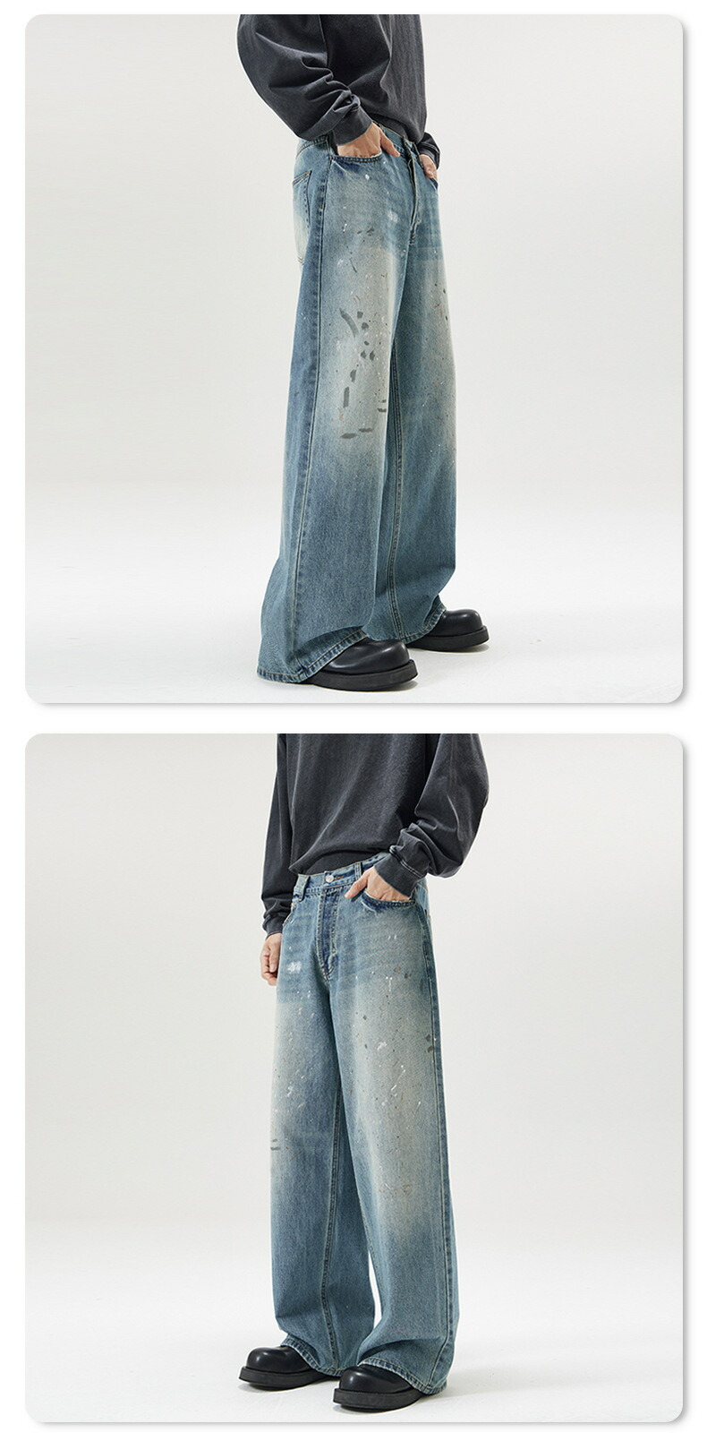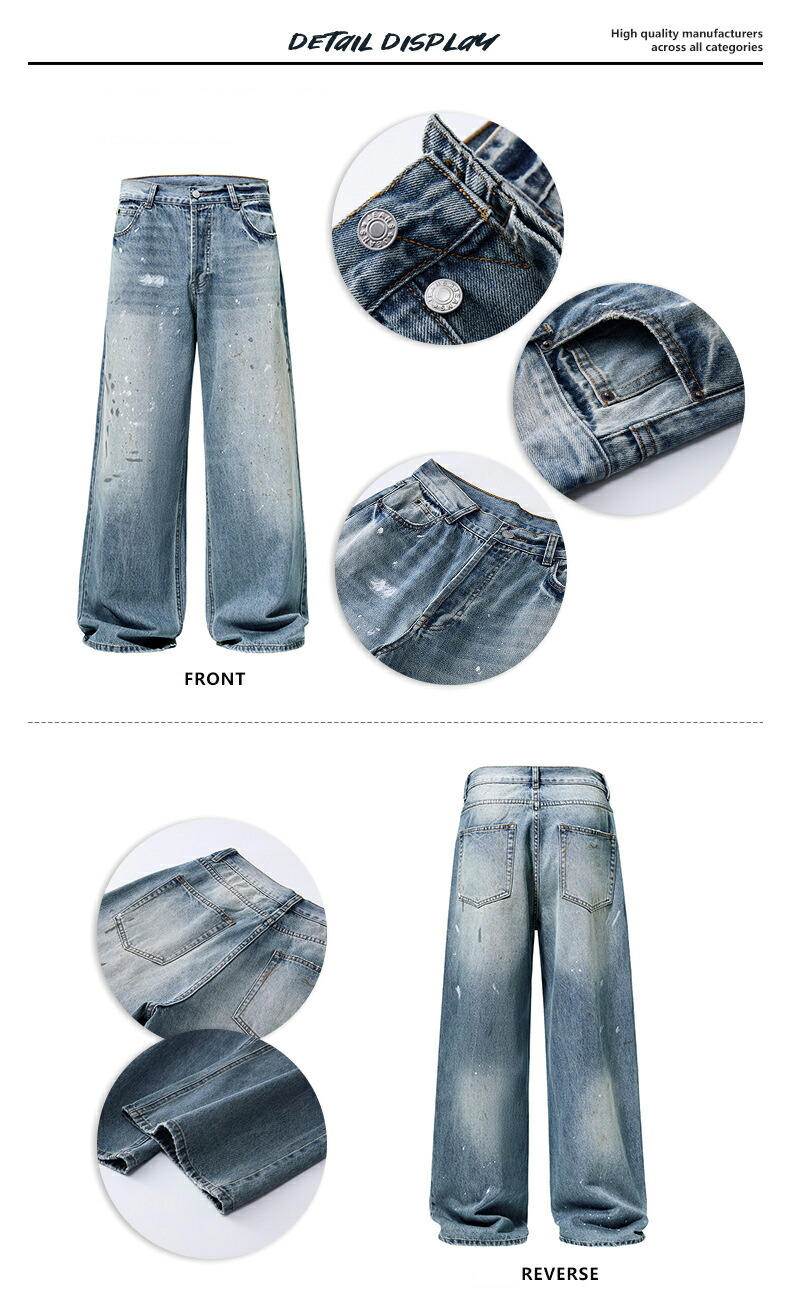 【送料無料】アメカジ ワイドパンツ カジュアル キレイめ ズボン ジーパン ビッグシルエット デニムパンツ 長ズボン ボトムス メンズパンツ ブルー S M L XL 2XL