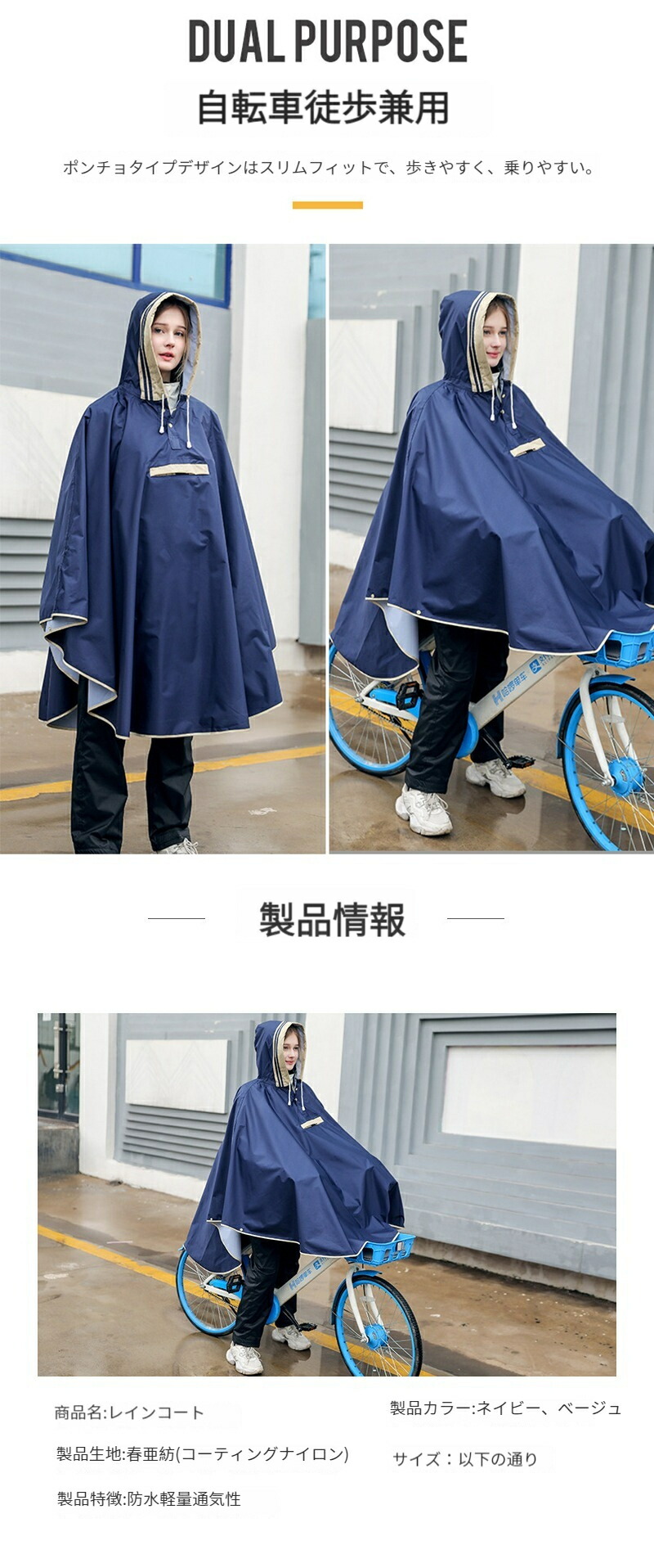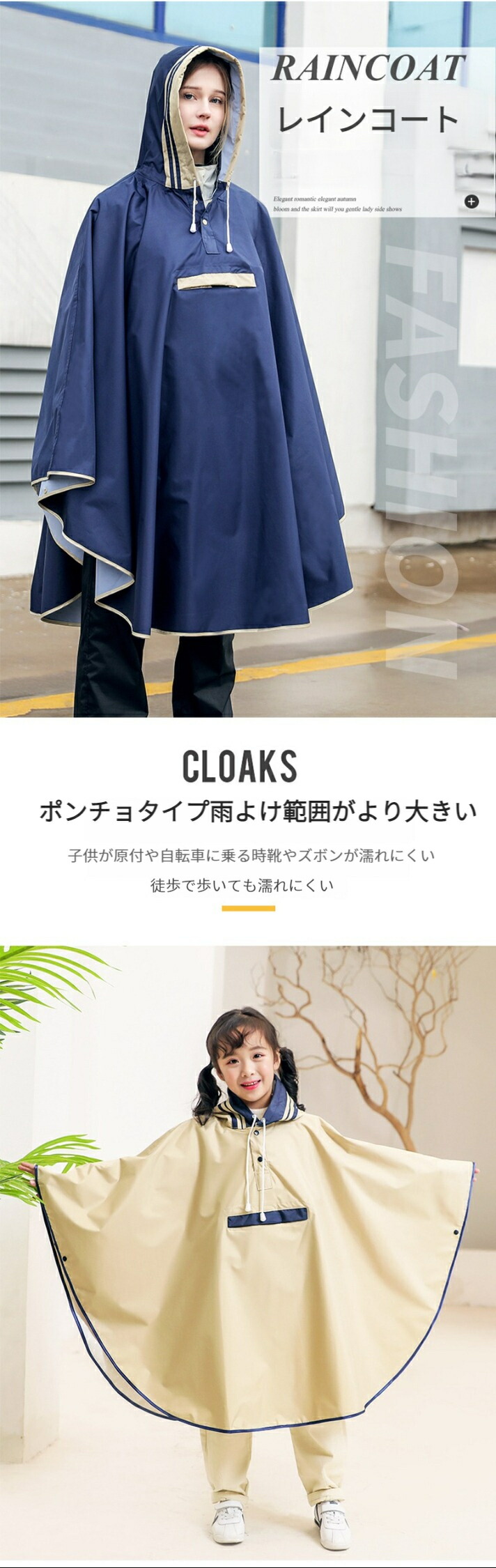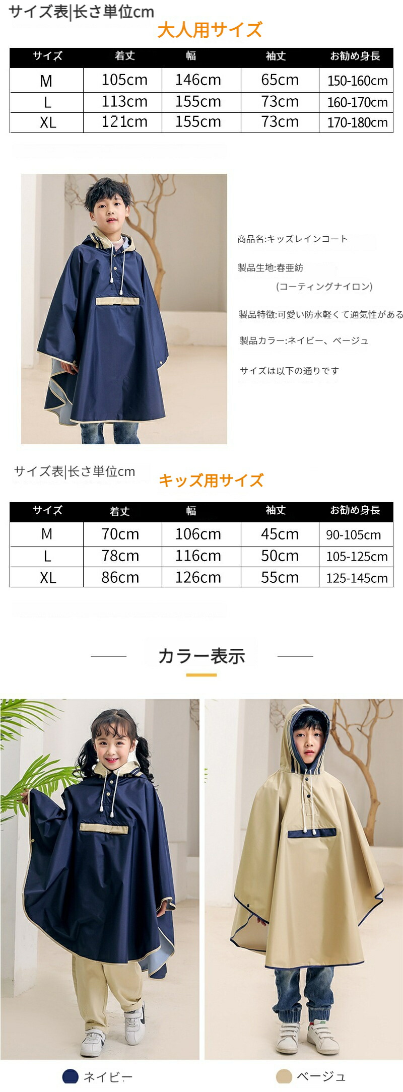 レインコート 自転車 大人&キッズ レ キッズ レインウェア 傘 レインコート 通販 ネイビー ベージュ スカイブルー 桜ピンク イエロー M L XL XXL