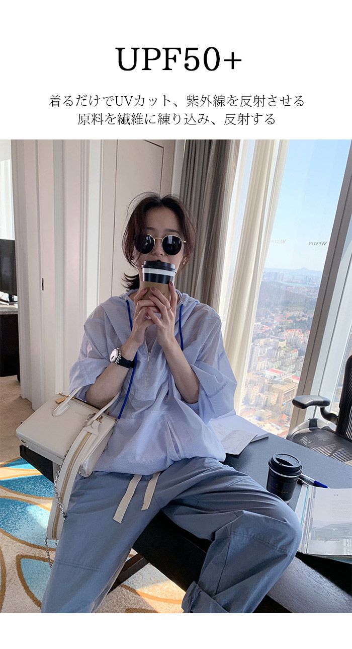 uvカット パーカー 接触冷感 ラッシ トップス パーカー お買い得 ピンク アプリコット グレーブルー グリーン チェックブルー S M L XL