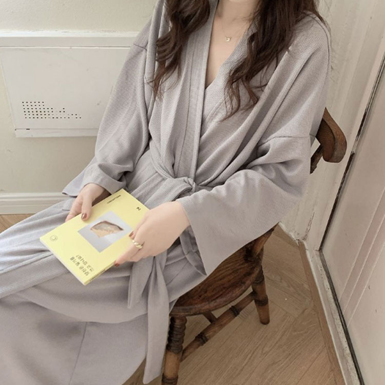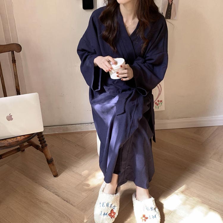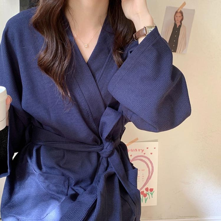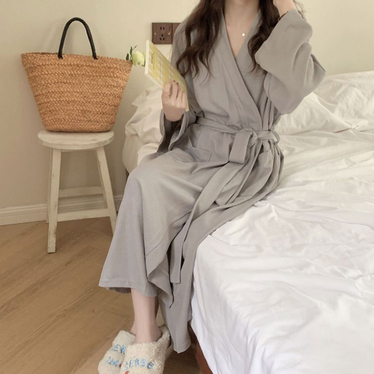 バスローブ レディース 前開き 春秋 インナー 下着 ナイトウエア 続々登場 ライトグレー ネイビー M(37.5-47.5KG) L(47.5-57.5KG) XL(57.5-70KG) 2XL(70-80KG)