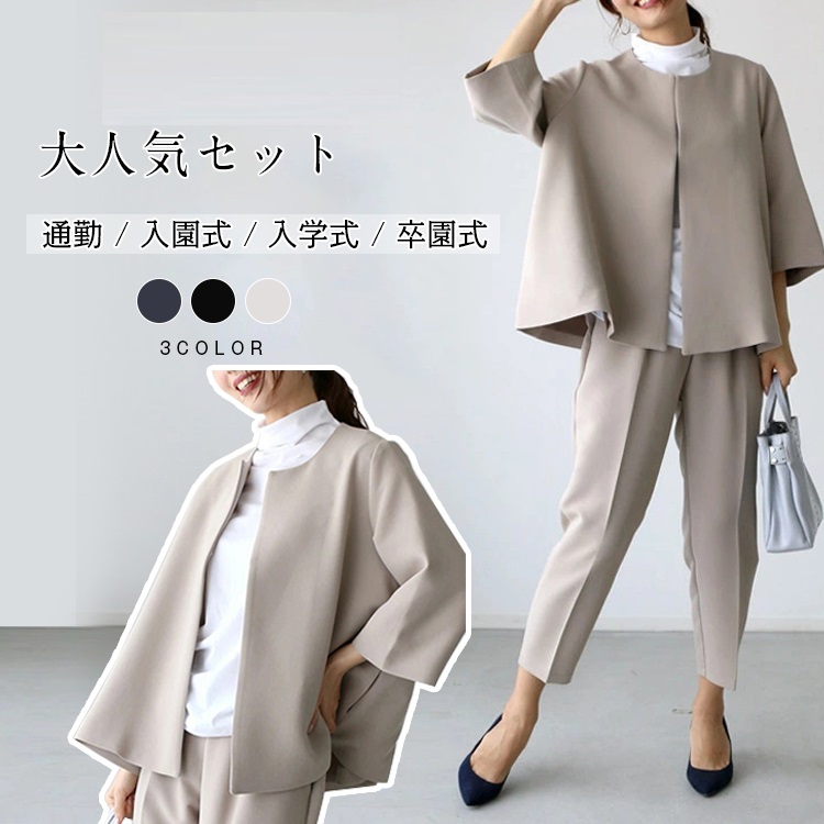 3色スーツセット レディース 通勤 入園式 入学式 卒園式 ママ スパーティードレス ジャケット セットアップ フォーマル 春夏秋冬 セット