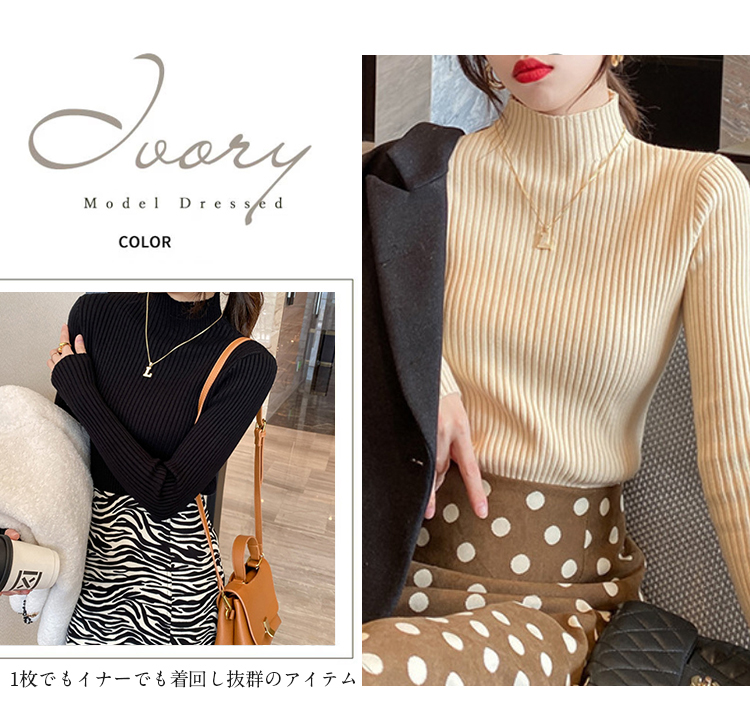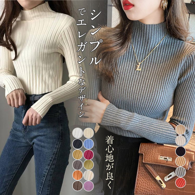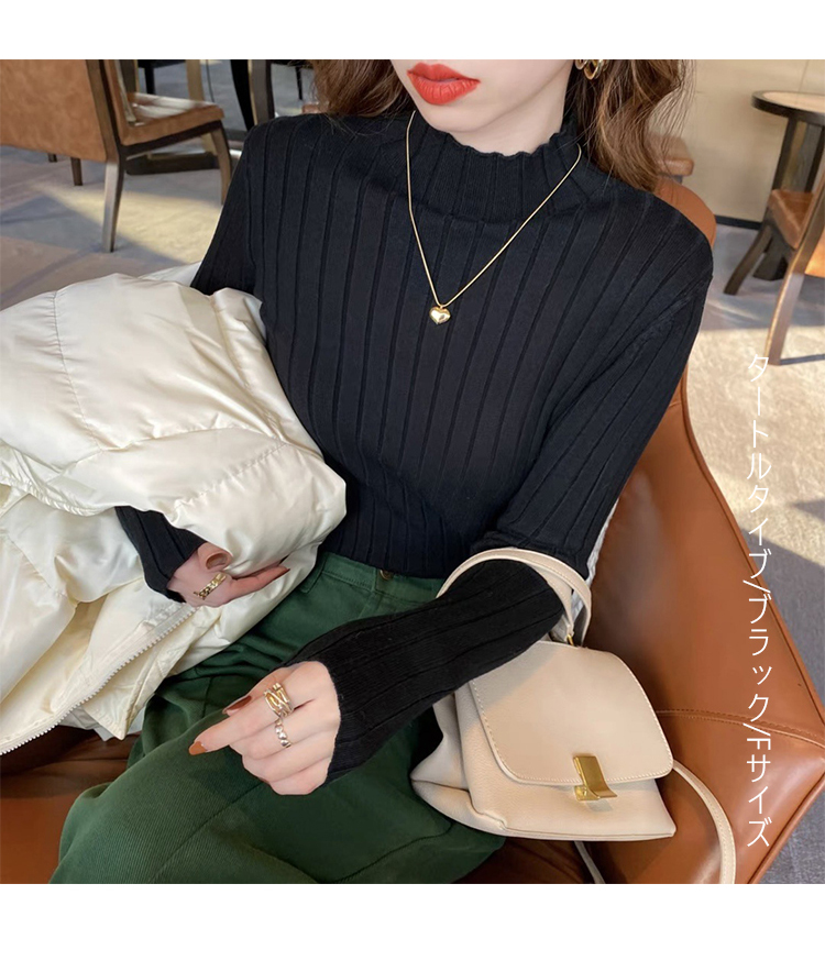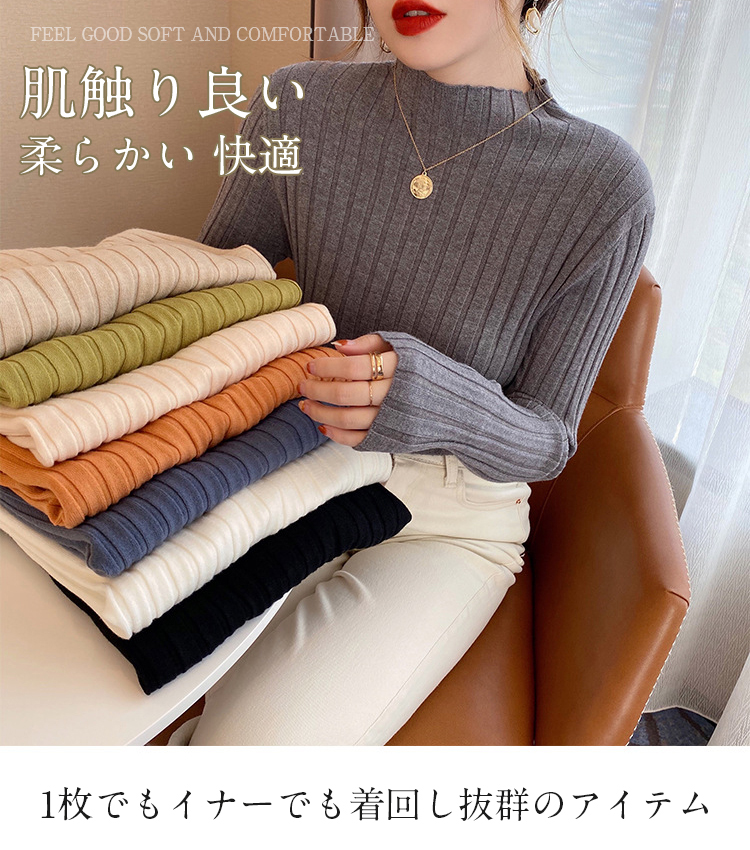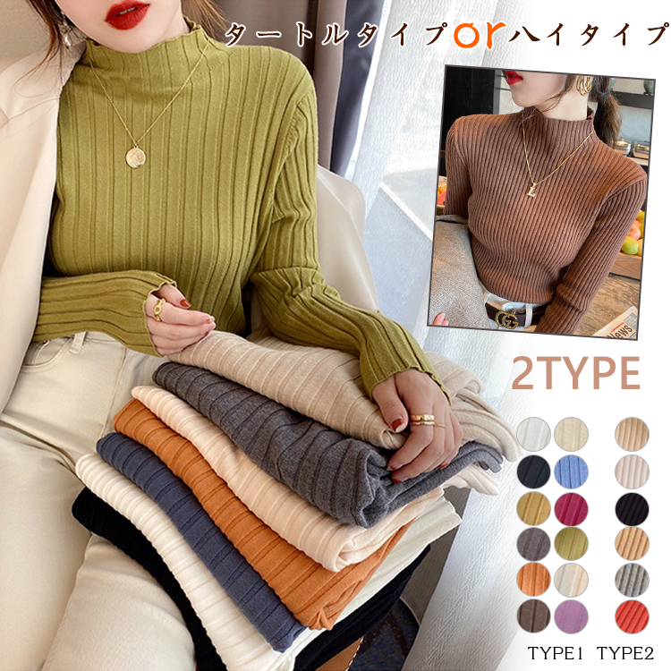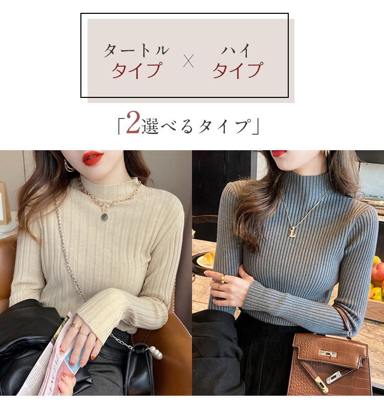 ニット 【選べる2タイプ】タートルタイプor八イタイプ ハイネックリブニット ニット レディース肌触り良い 柔らかい 快適 伸縮性いい 長袖