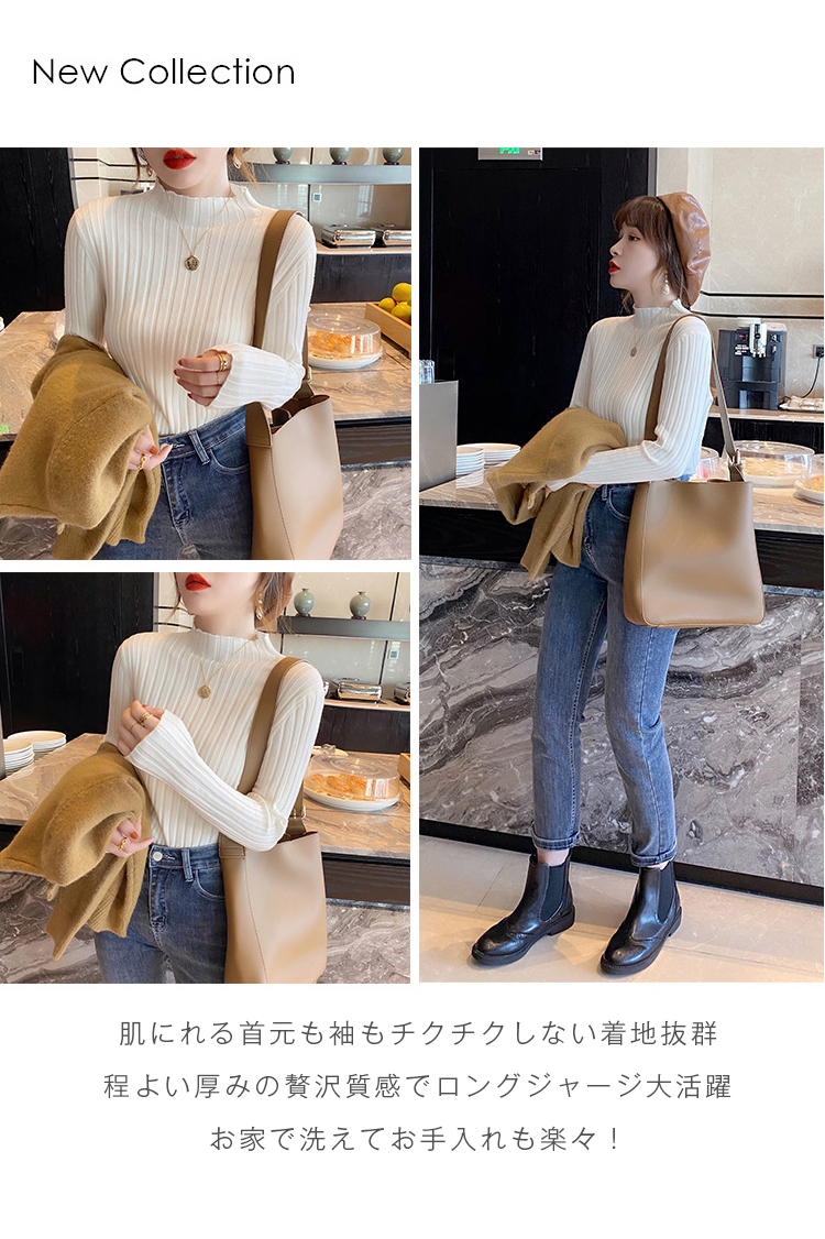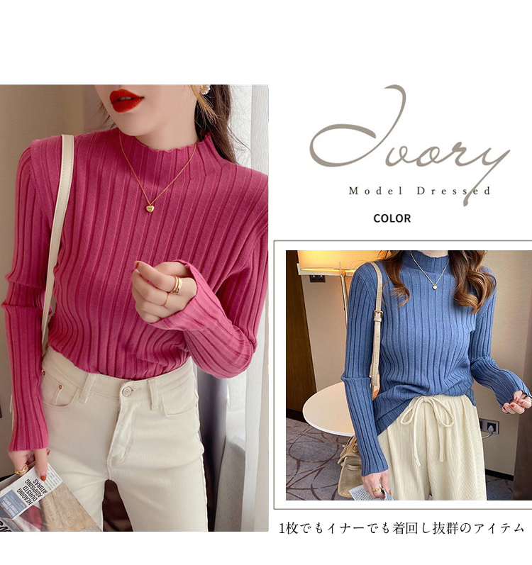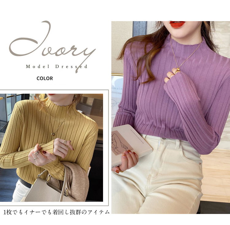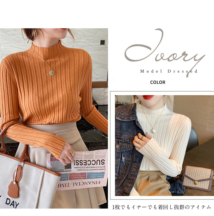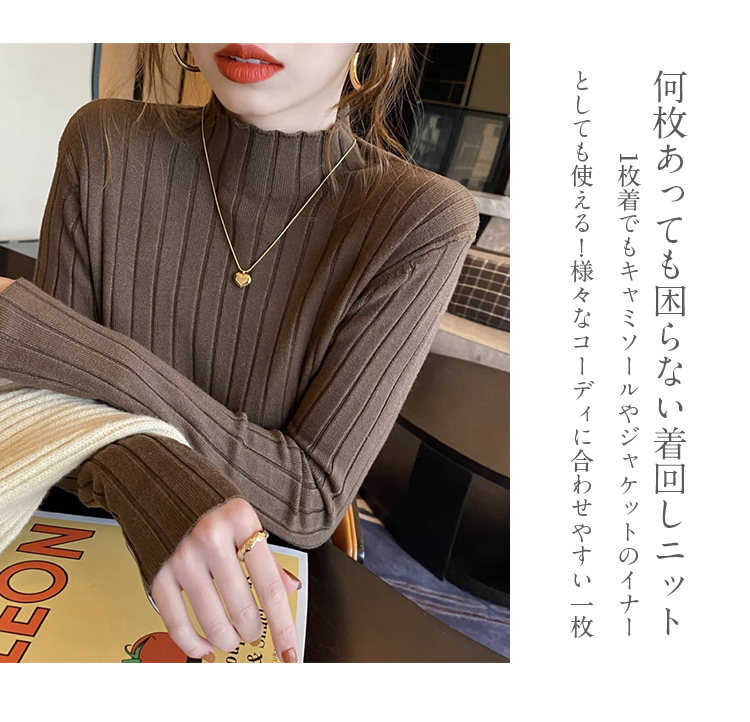 ニット 【選べる2タイプ】タートルタイプor八イタイプ ハイネックリブニット ニット レディース肌触り良い 柔らかい 快適 伸縮性いい 長袖