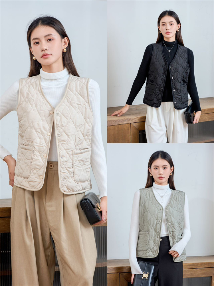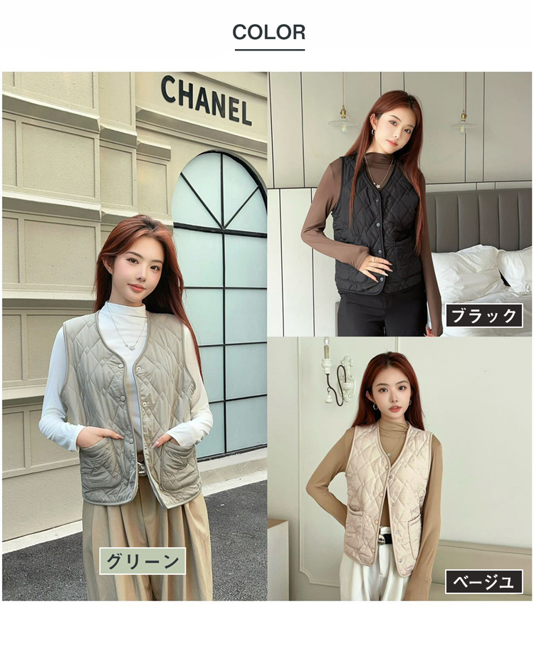 超軽量 ベスト レディース 前開き キルティングベスト 無袖 ノースリーブ レイヤード風 大人 暖かい 柔らかい 軽量 防寒 シンプル春 秋 冬 通勤 普段着