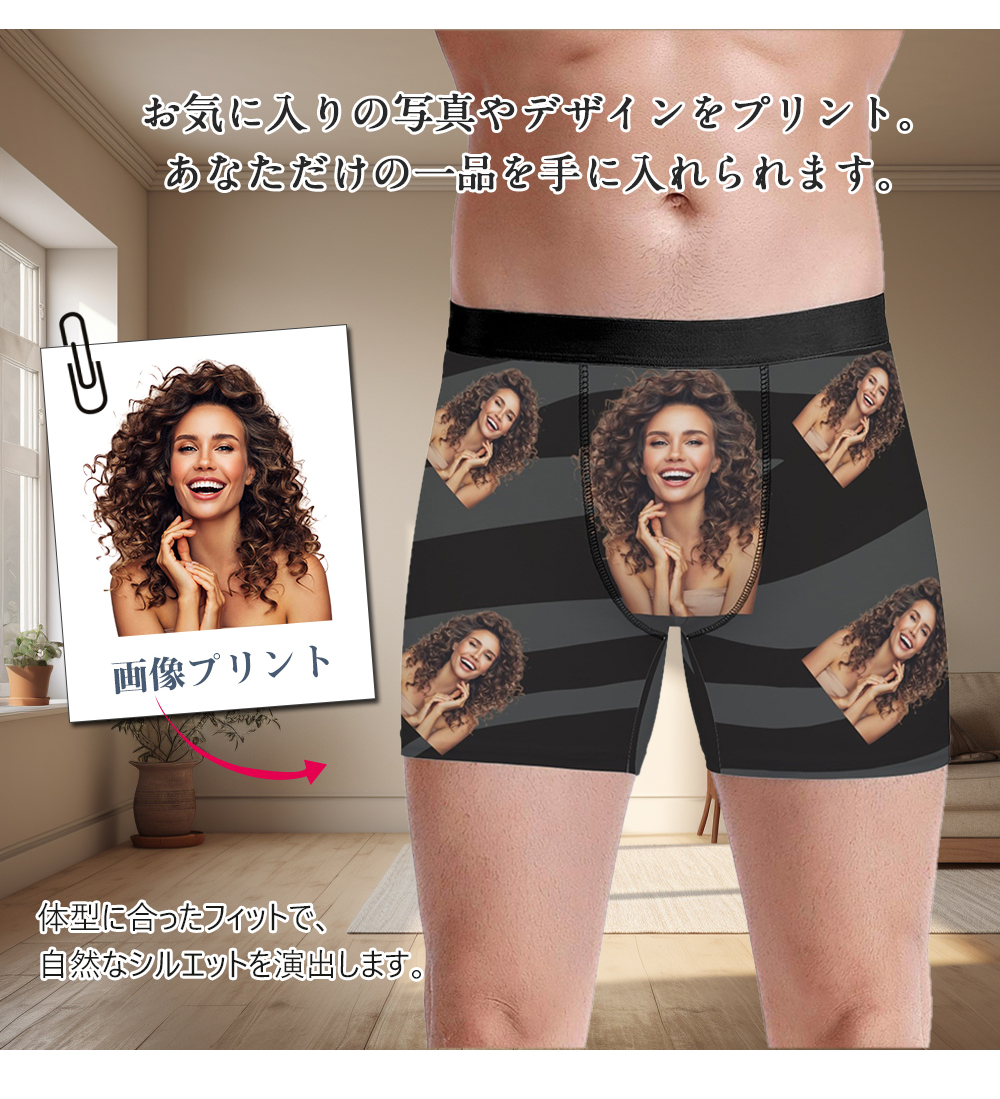 【完全オーダーメイド】POD 写真プリント スポーツボクサーブリーフ | 吸汗速乾 ストレッチ素材 メンズインナー | バレンタイン 誕生日ギフト対応 オリジナルデザイン可能