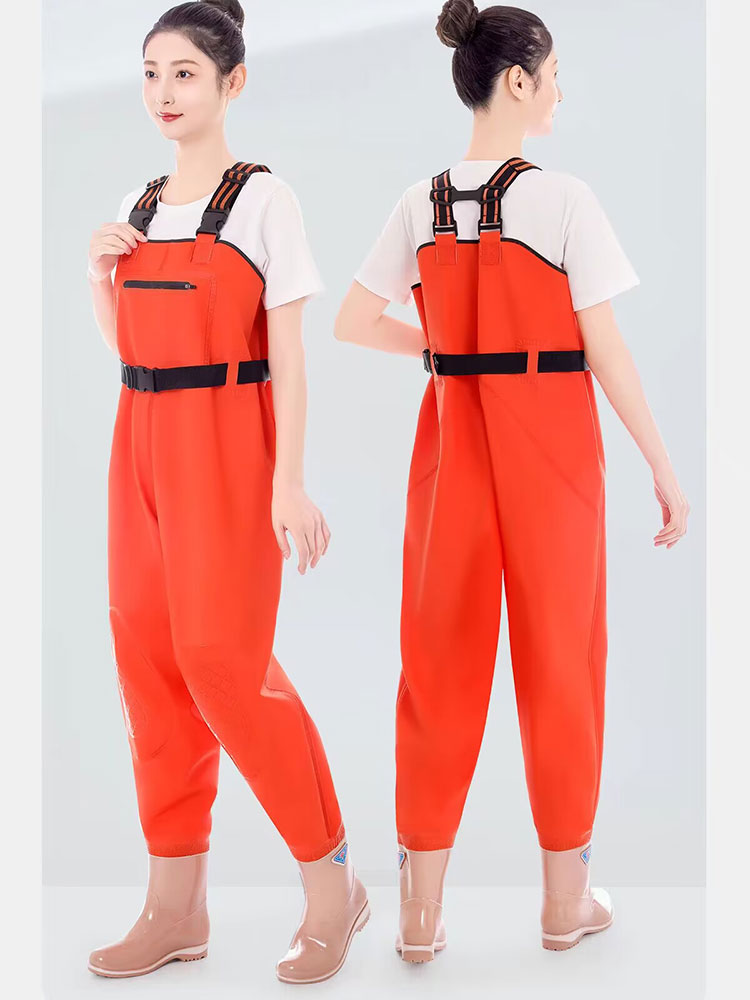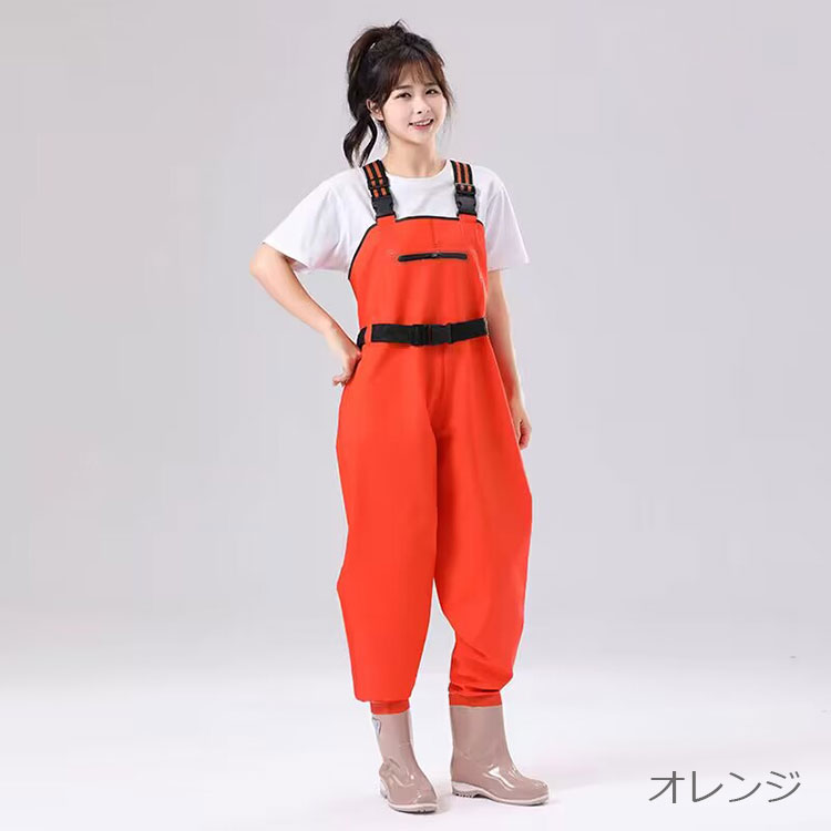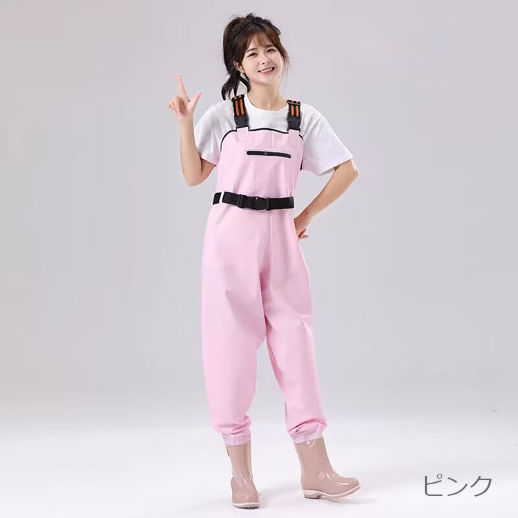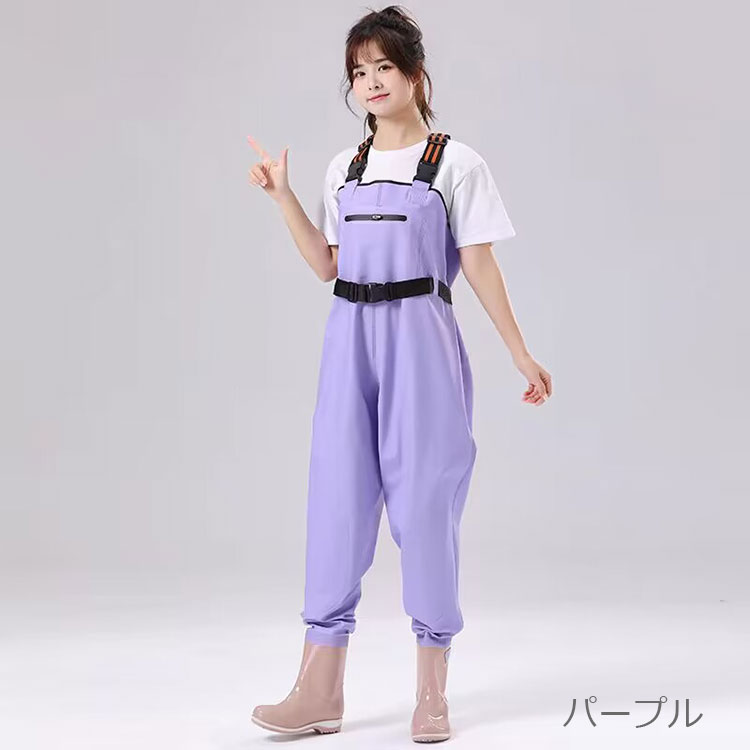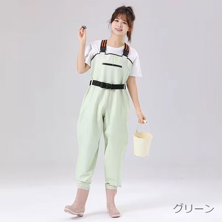 レディース用レインブーツ ウェーダー チェストハイ お釣り 潮干狩り 水遊び 胴付長靴 防水 滑り止め 田んぼ 水場仕事 漁業 水産 渓流 アウトドア オールインワン