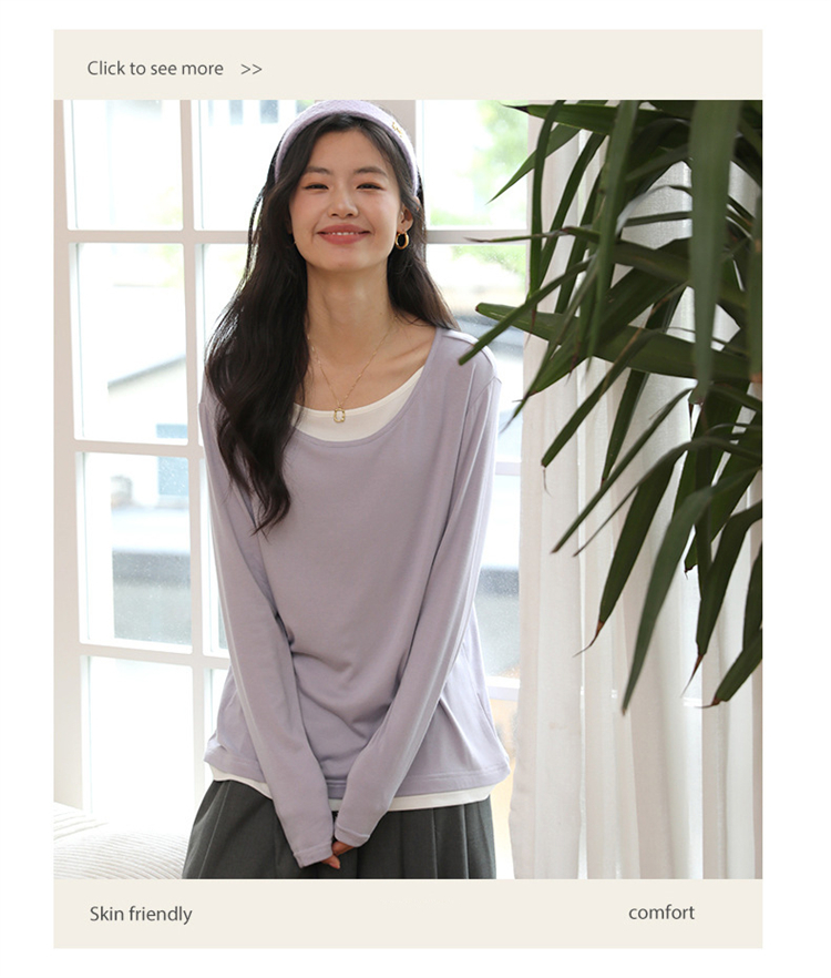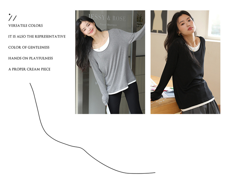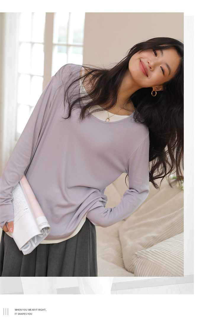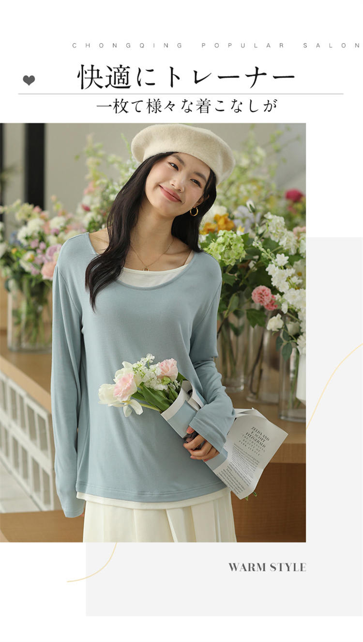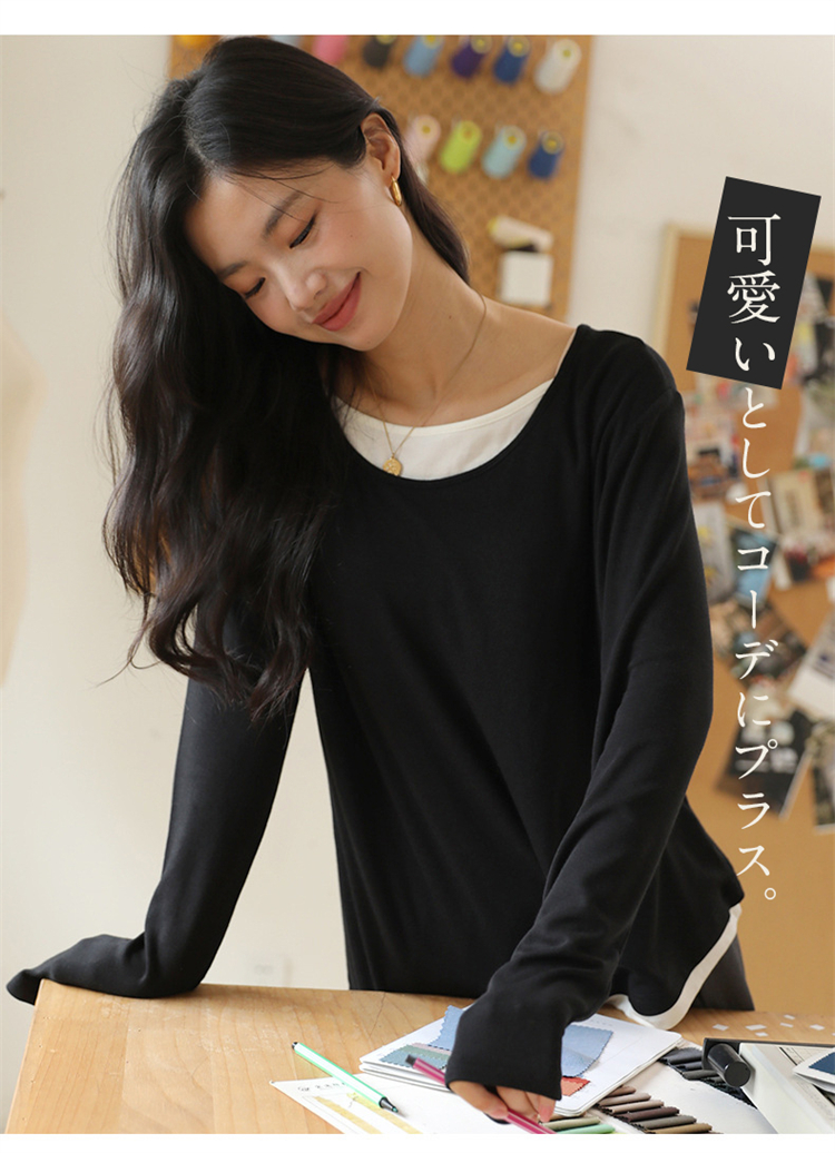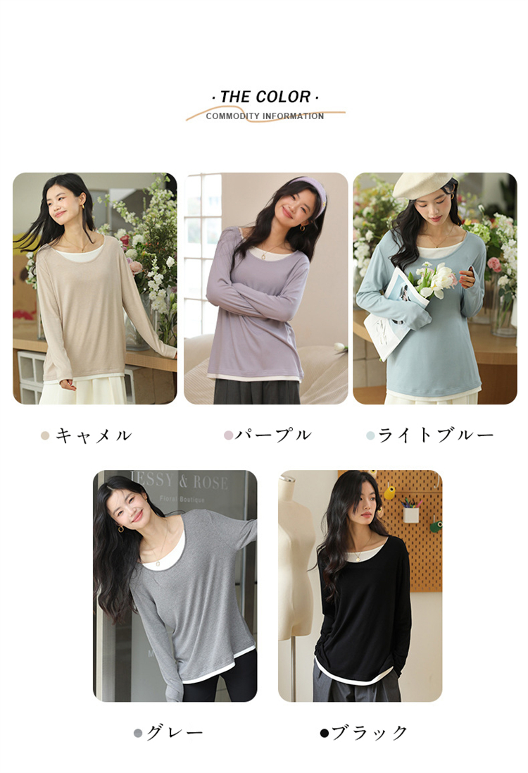 クールネック プルオーバー トレーナー レディース スウェット シャツ 3タイプ 裏起毛 カットソー レイヤード風 大きいサイズ ブラウス 長袖 トップス 綿素材 インナー 重ね着 薄手 厚手 防寒 羽織り 極暖 普段着 大人 ユニセックス 無地 シンプル 春 秋