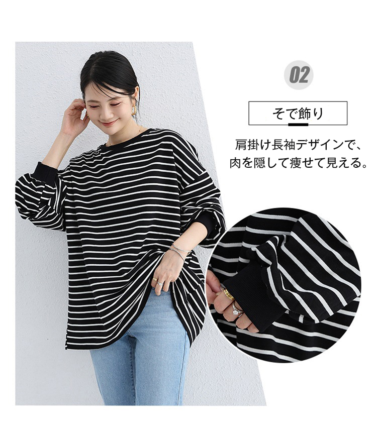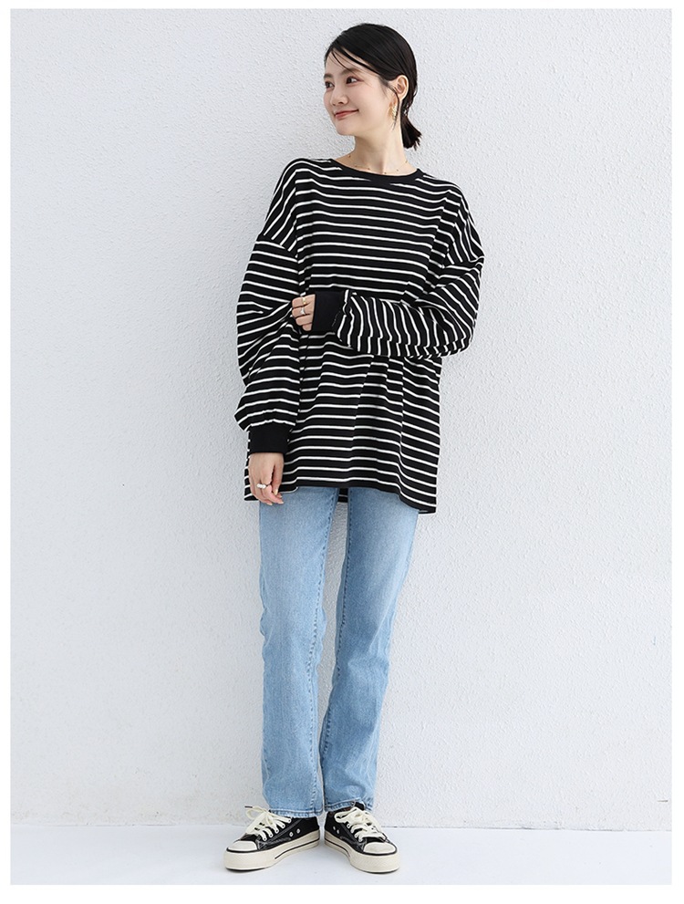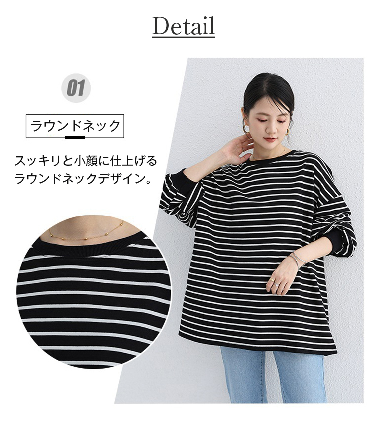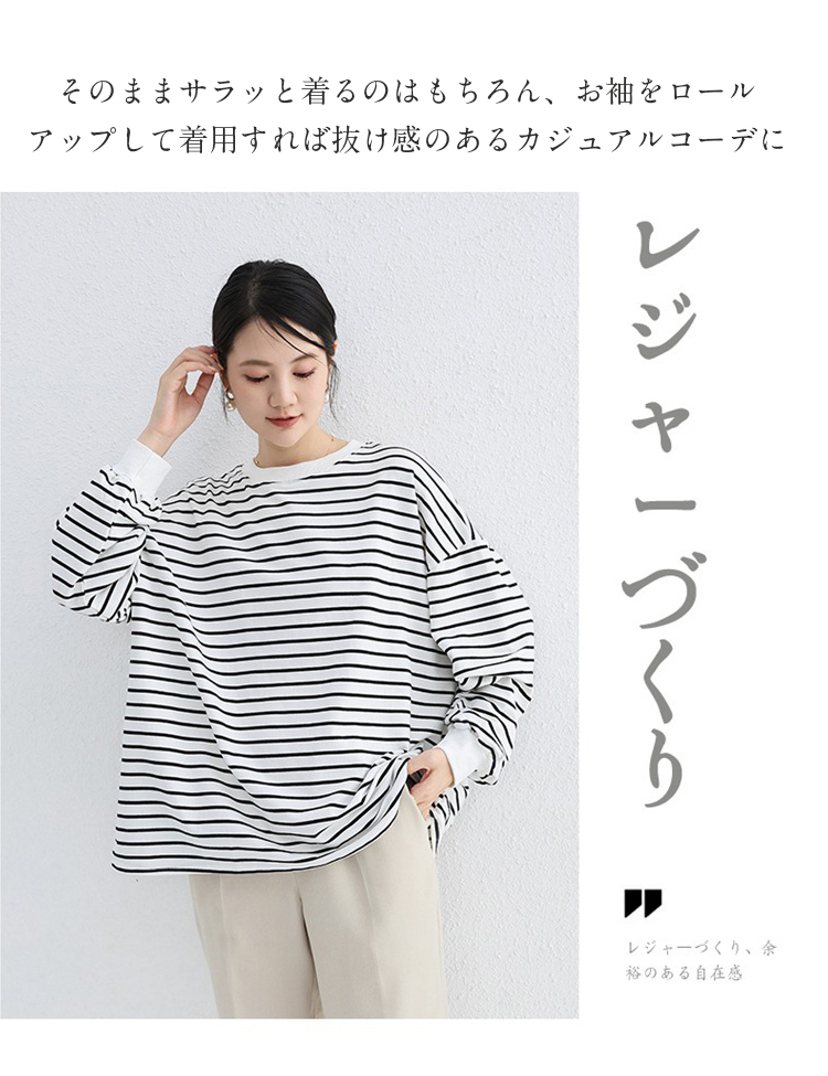 ■ボーダー計算されたボーダーのピッチでスッキリ引き締め魅せを叶える美人デザイン。・無地テイストやシーンを選ばず着られる万能デザイン。