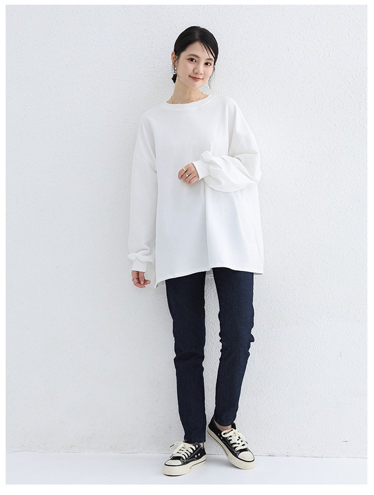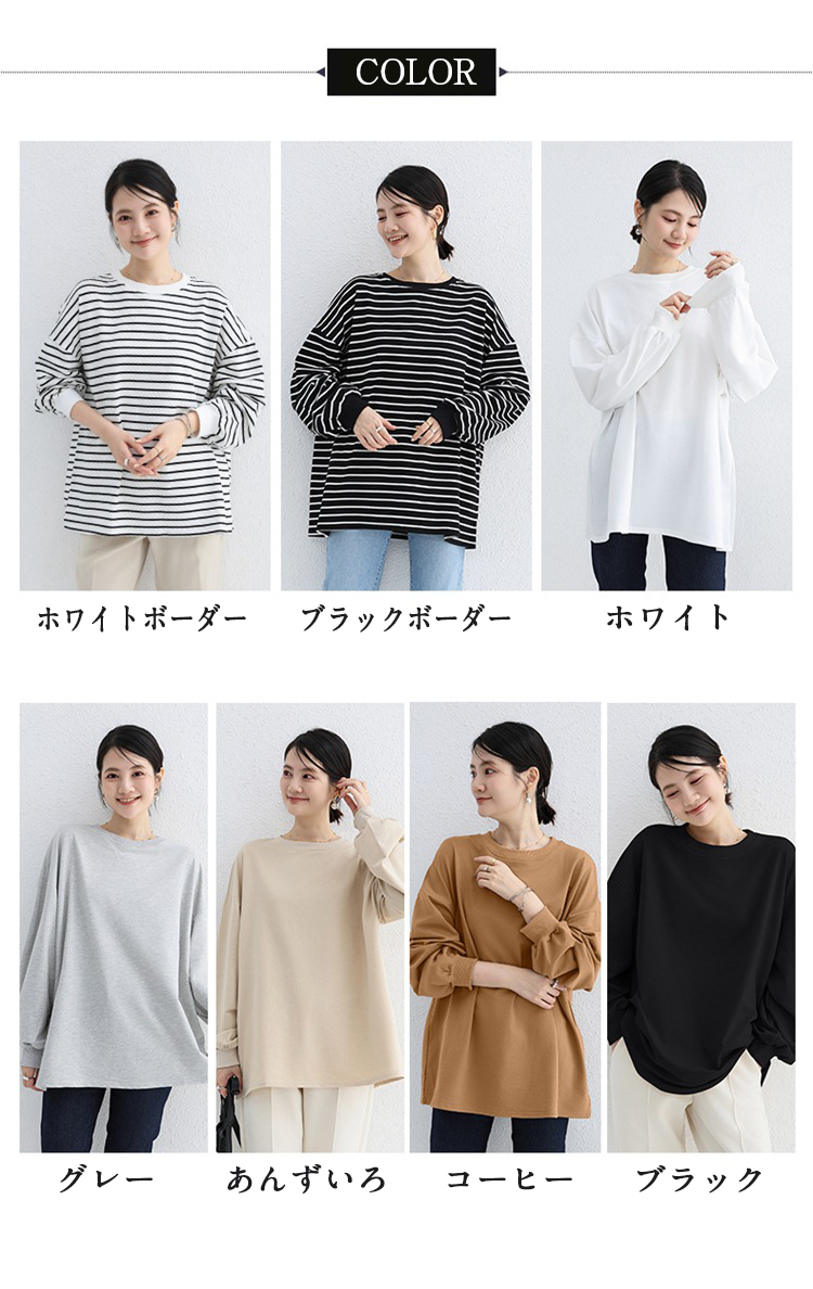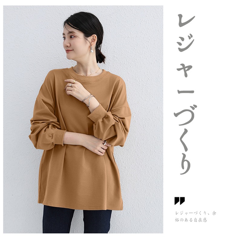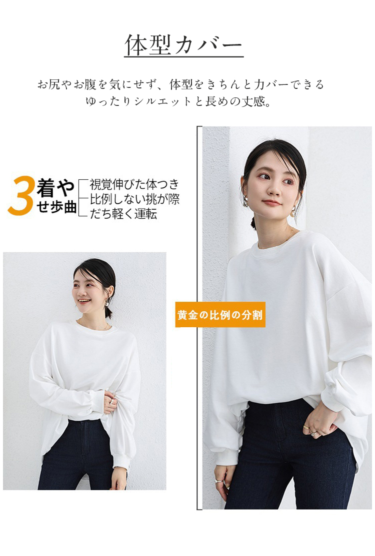 ■体型カバーお尻やお腹を気にせず、体型をきちんとカバーできるゆったりシルエットと長めの丈感。ボトムスとのバランスもGOOD!