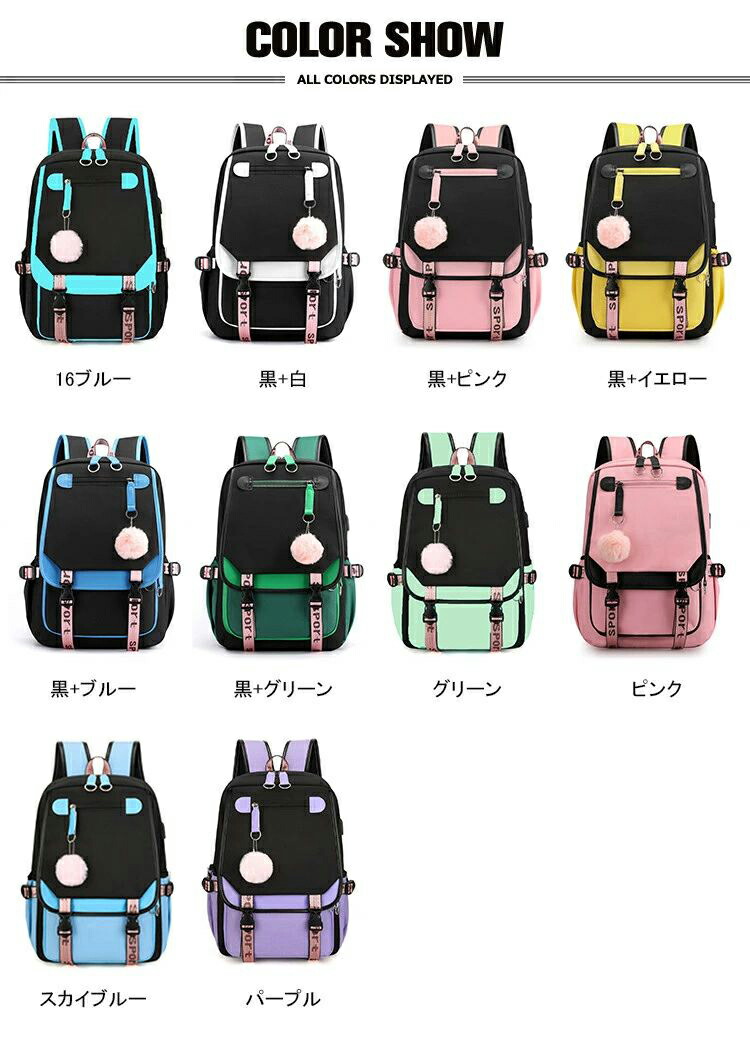 リュック レディース メンズ リュック バッグ 小物 ブランド雑貨 新登場! 16ブルー 黒+白 黒+ピンク 黒+イエロー 黒+ブルー 黒+グリーン グリーン ピンク スカイブルー パープル