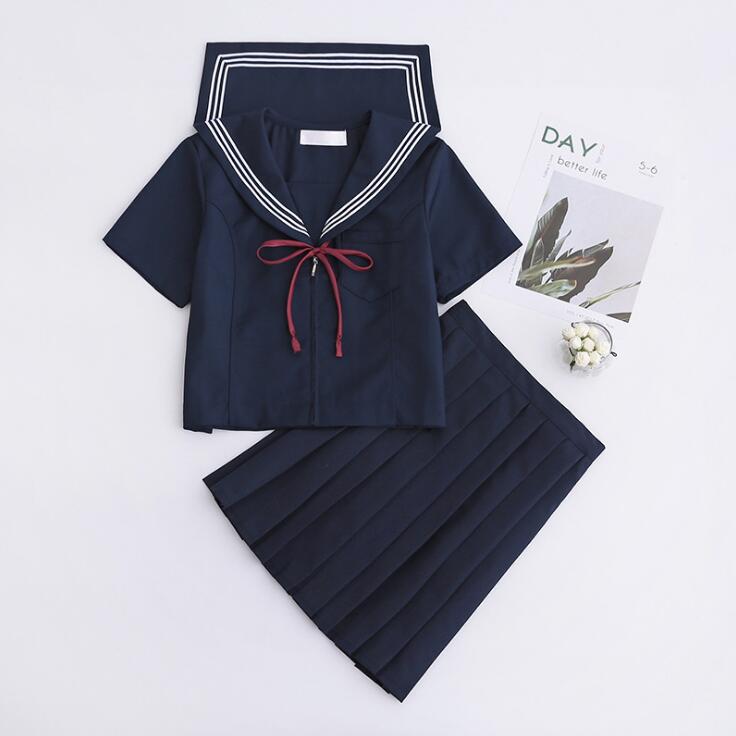 セーラー服 制服 学生服 半袖/長袖 コスプレ衣装 スクールウェア 3点セット プリーツスカート ネイビー大人コスチューム 女子高生 JK コスプレ