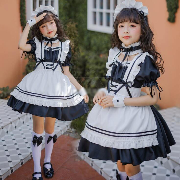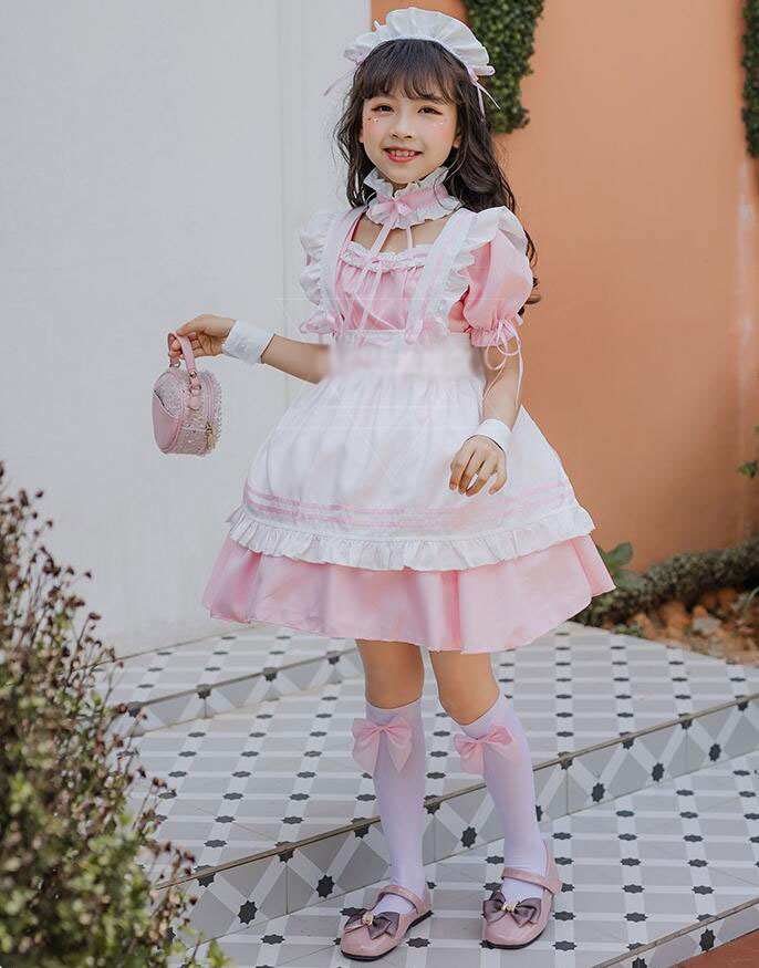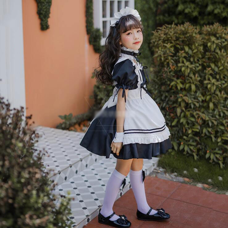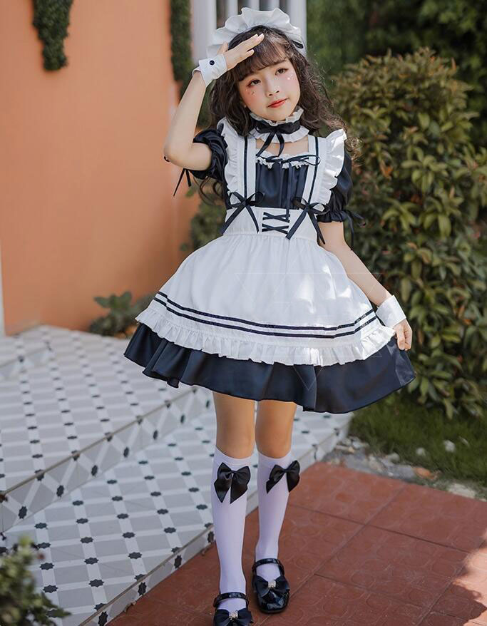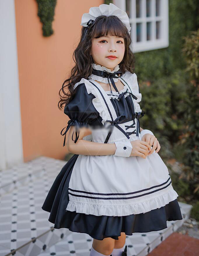 子供メイド服 子どもワンピース 女の子コスチューム キッズ半袖ワンピ メイドコスプレ 定番 可愛いコスチューム コスプレ衣装