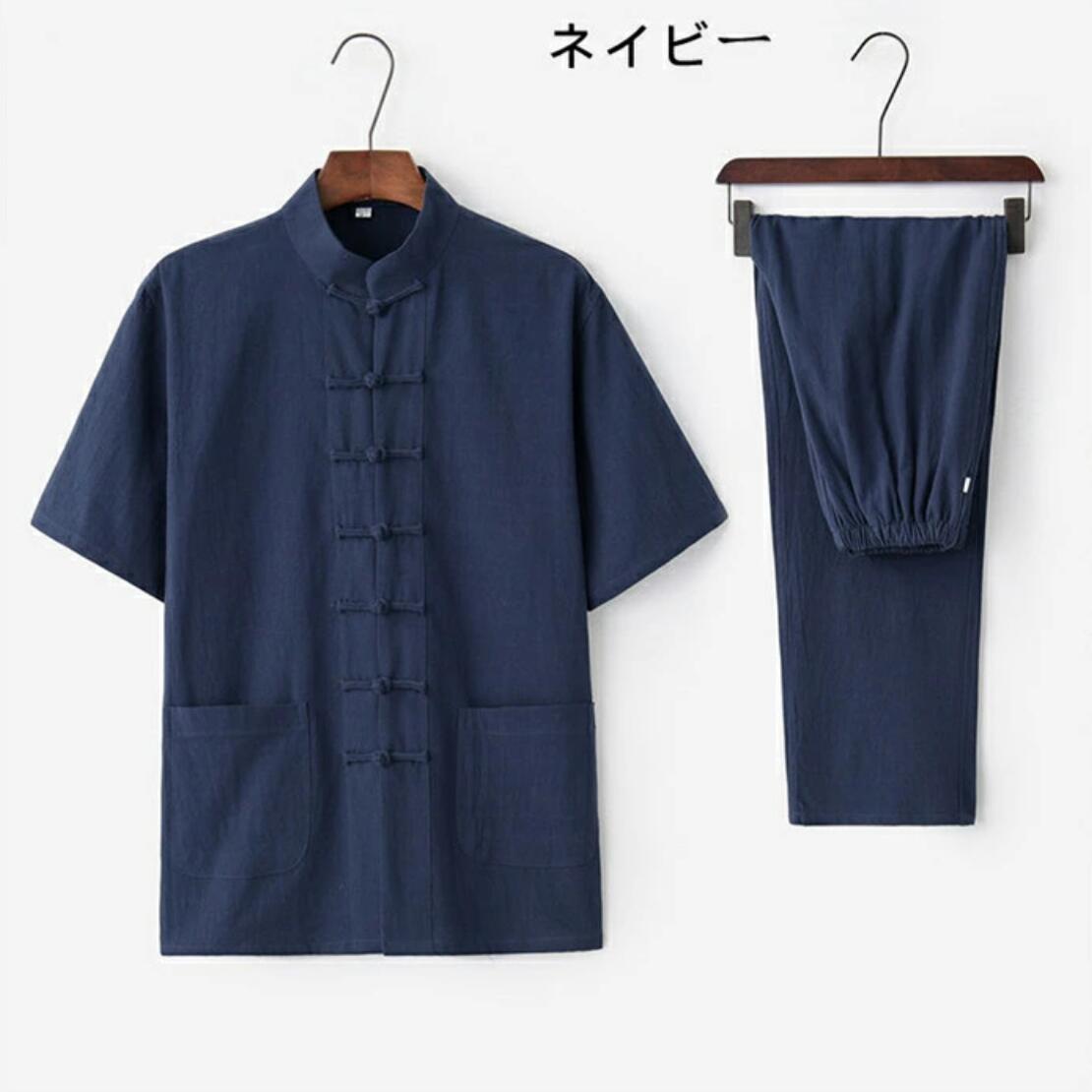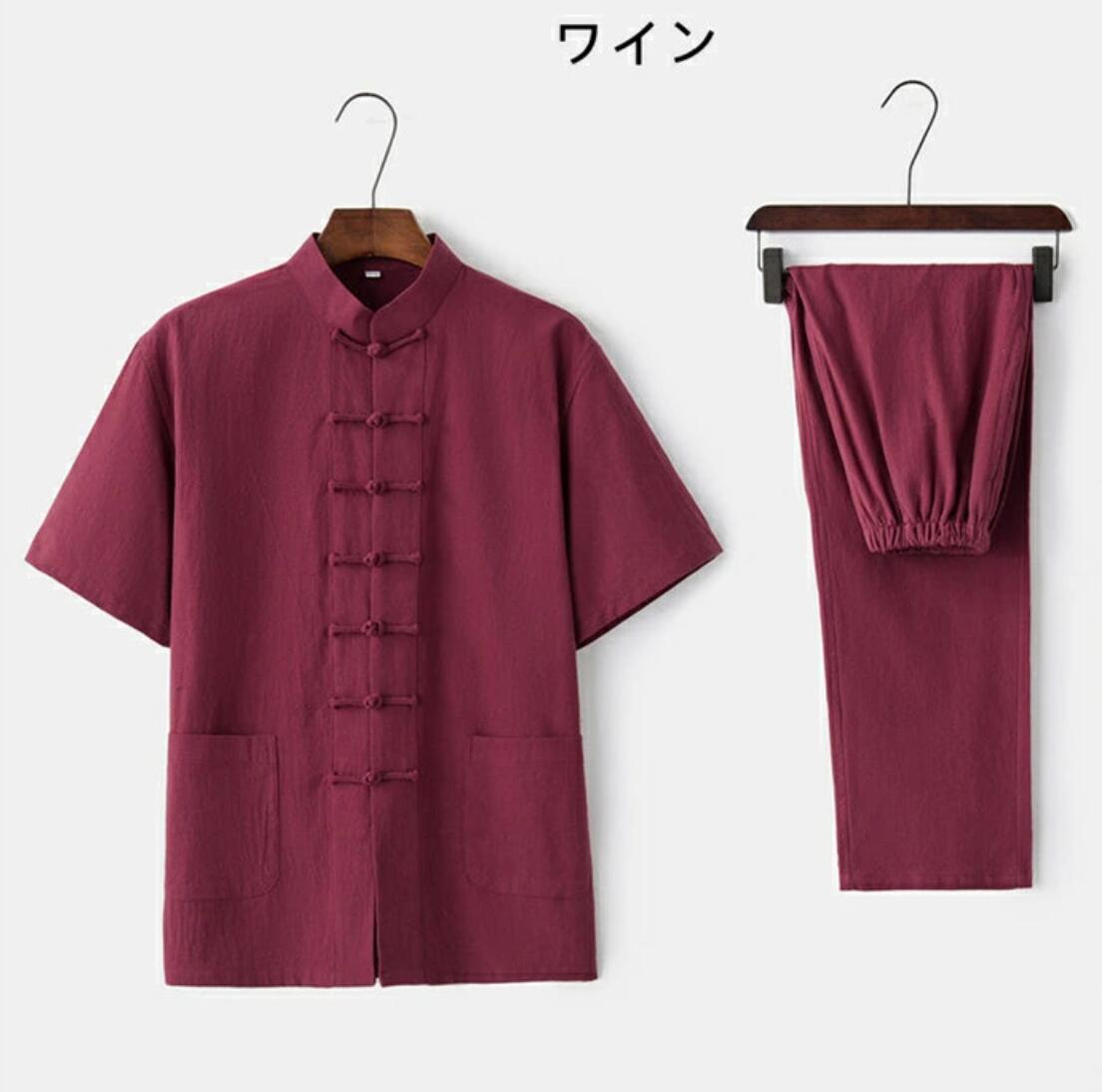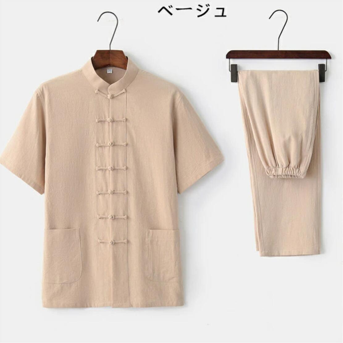 商品詳細 メンズ 綿麻太極拳ウェア チャイナ服 半袖シャツ ロングパンツ 上下セットアップ