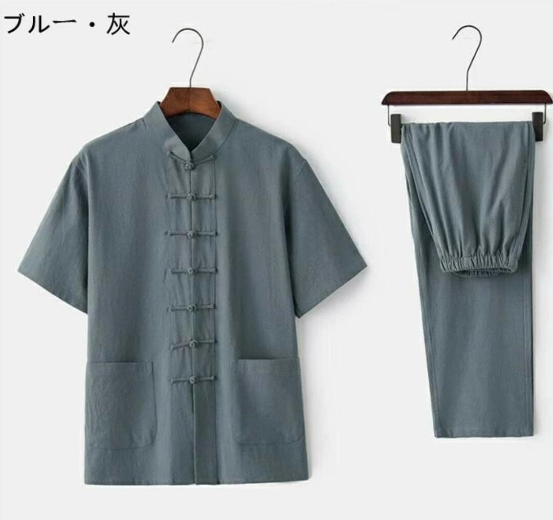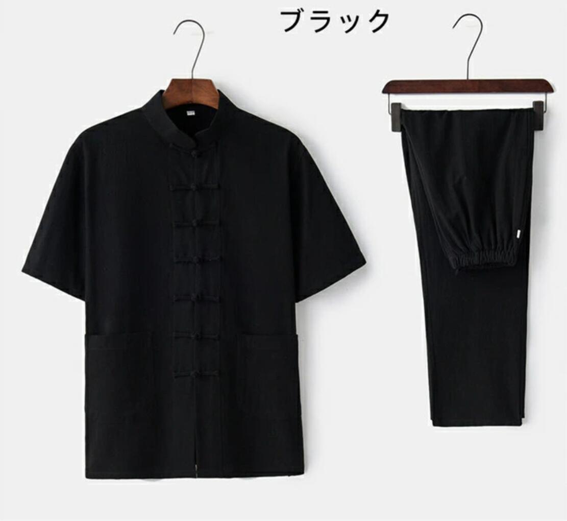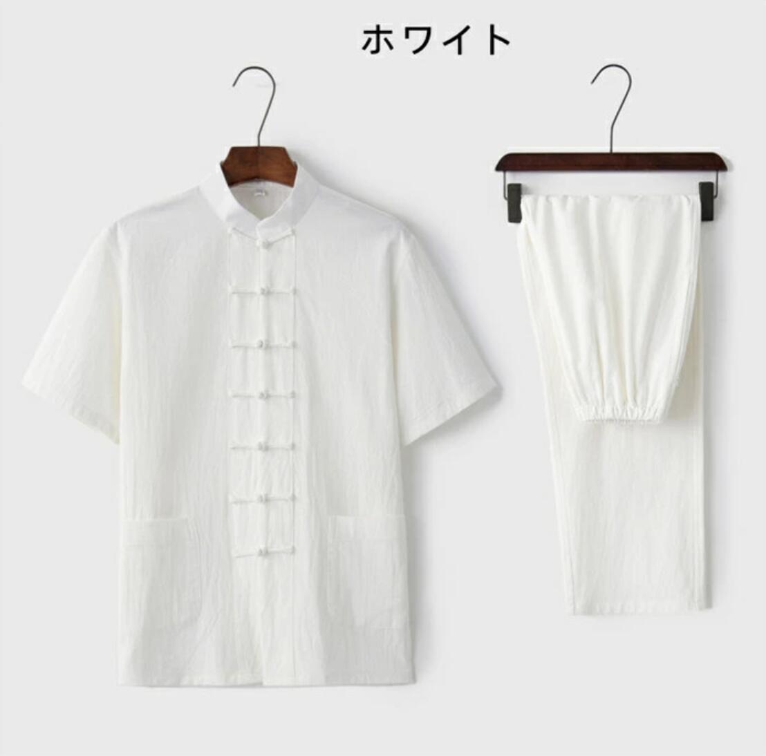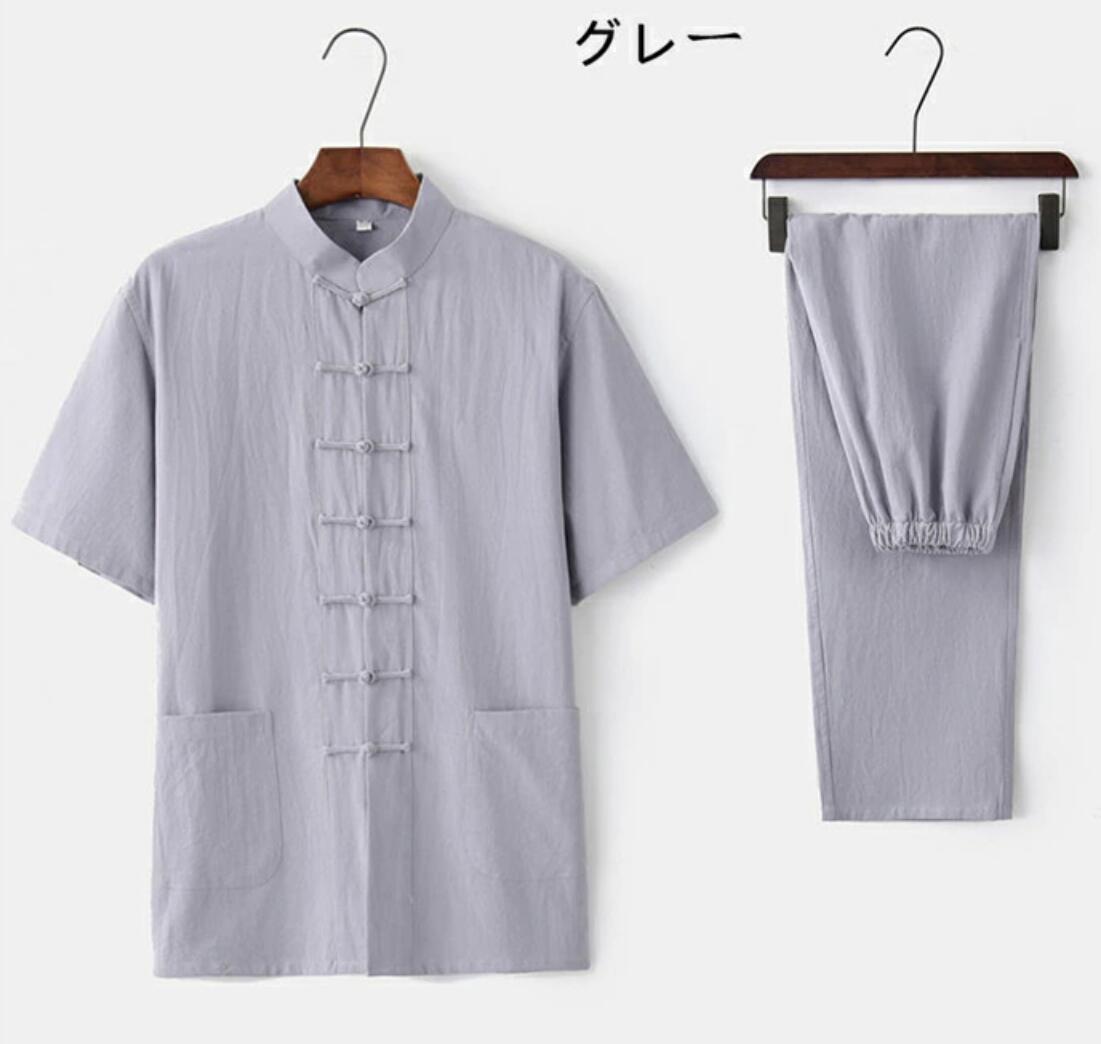商品詳細 メンズ 綿麻太極拳ウェア チャイナ服 半袖シャツ ロングパンツ 上下セットアップ