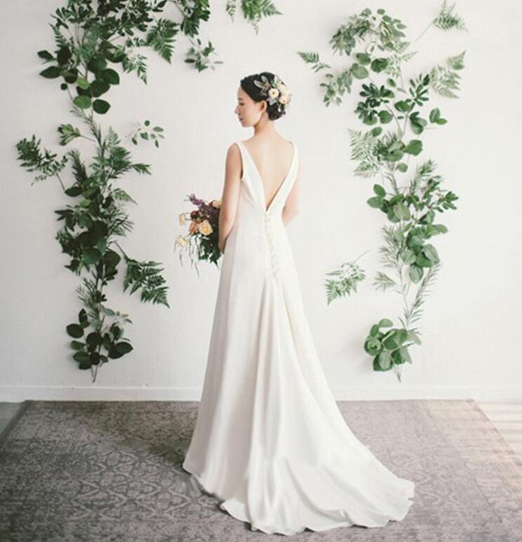 ウェディングドレス ノースリーブ 花嫁ドレス 二次会ドレス 後撮り 前撮り お呼ばれ 結婚式 スレンダーライン エレガント シンプル エンパイアライン 海外挙式 披露宴 パーティー 二次会 ハネムーン